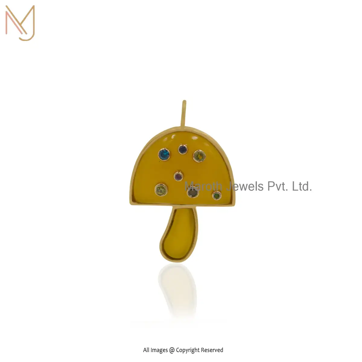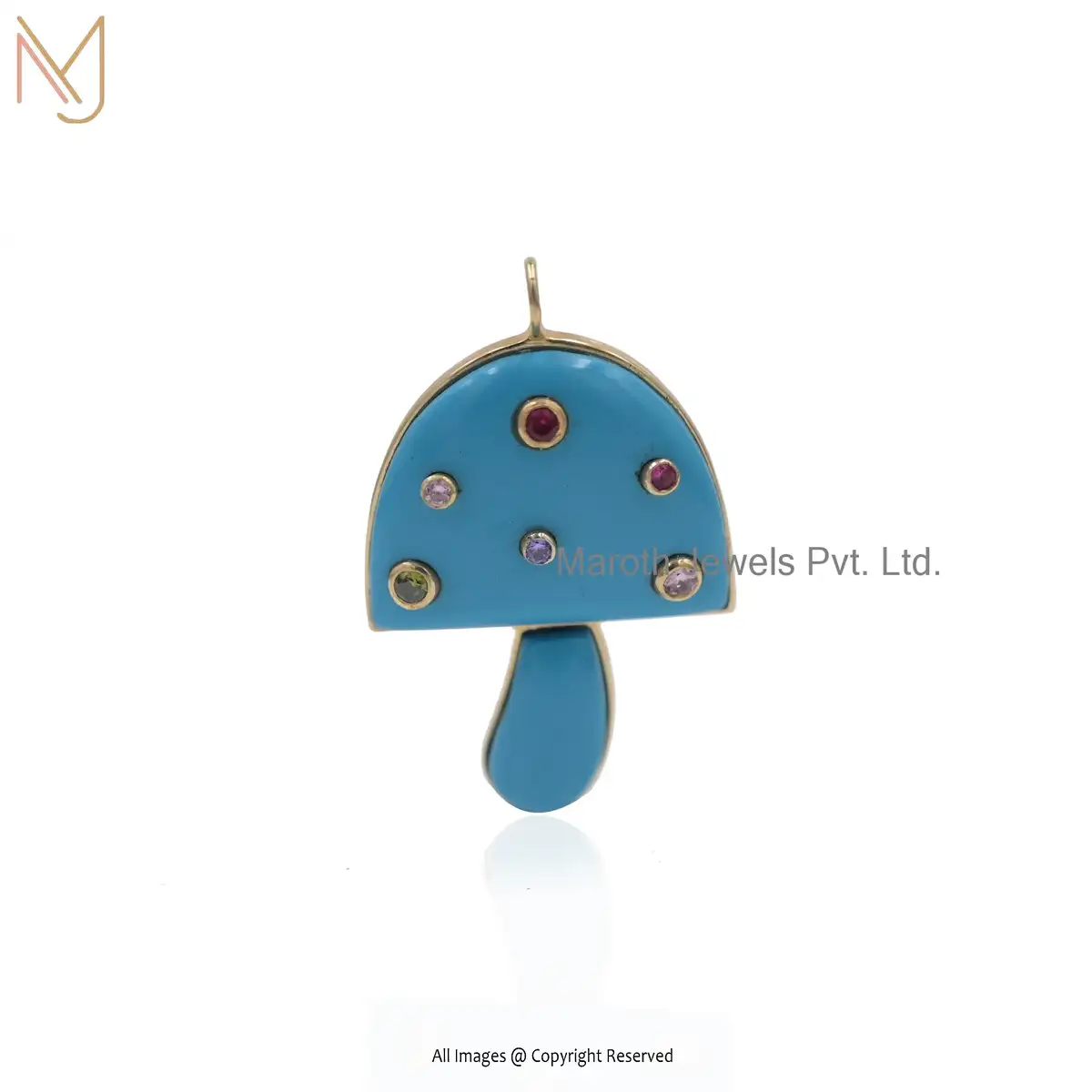 925 Silver Yellow Gold Moonstone & Multi Gemstone Mushroom Pendant Jewelry Manufacturer