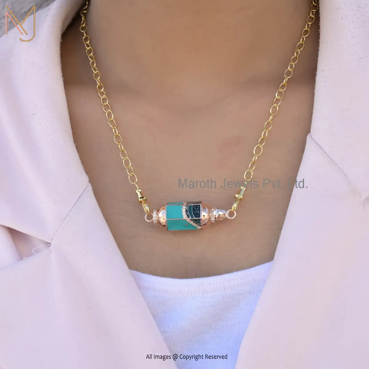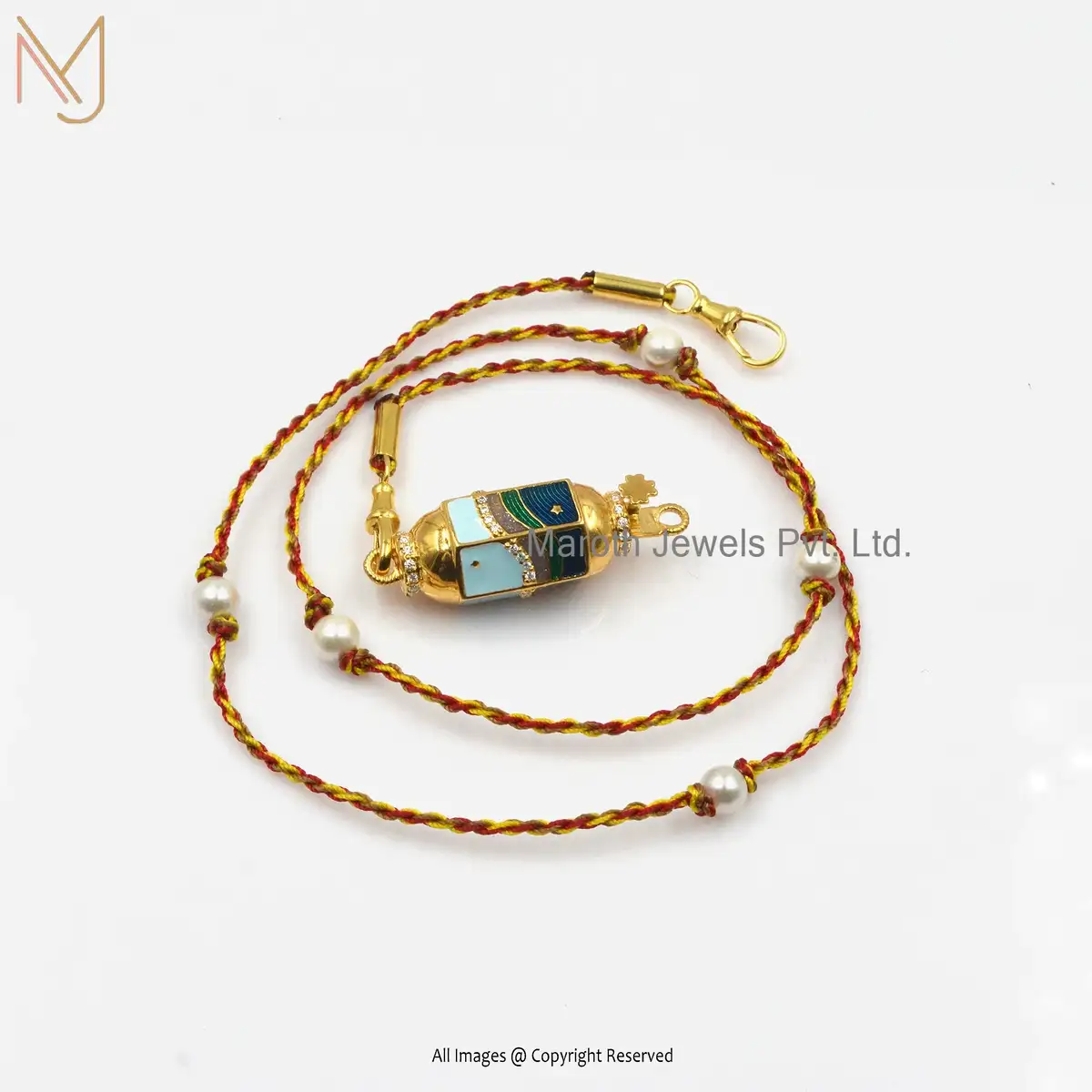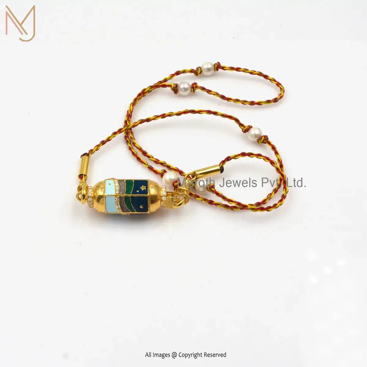 925 Silver Yellow Gold Multi Enamel & Moissanite Pendant Necklace Manufacturer