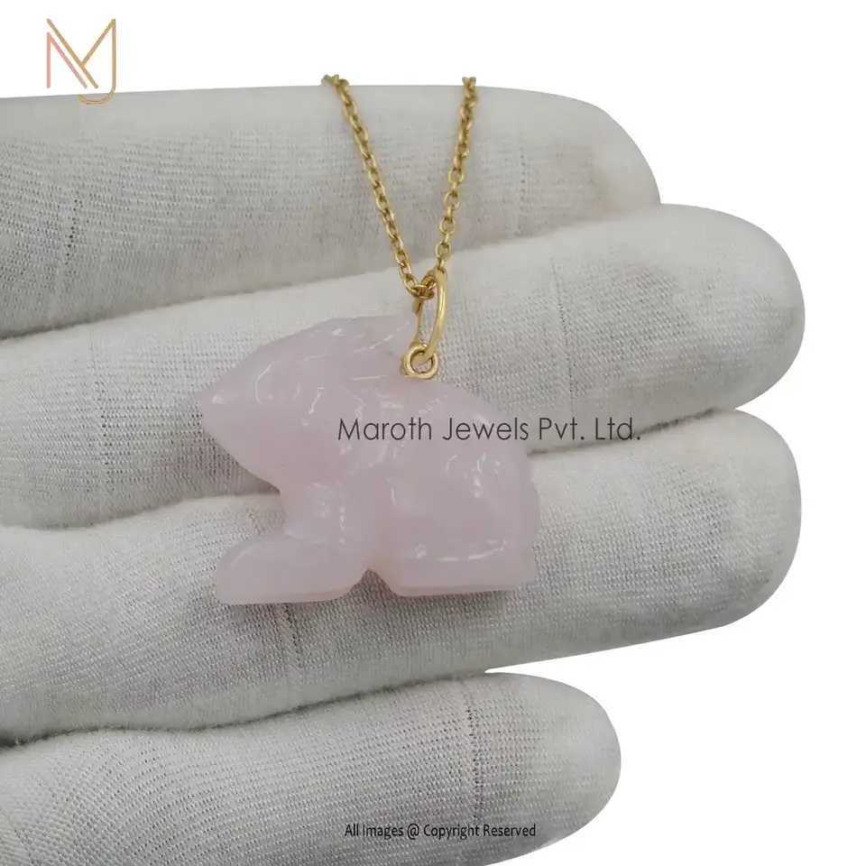925 Silver Yellow Gold Palted Rose Quartz Animal Pendants Custom Jewelry