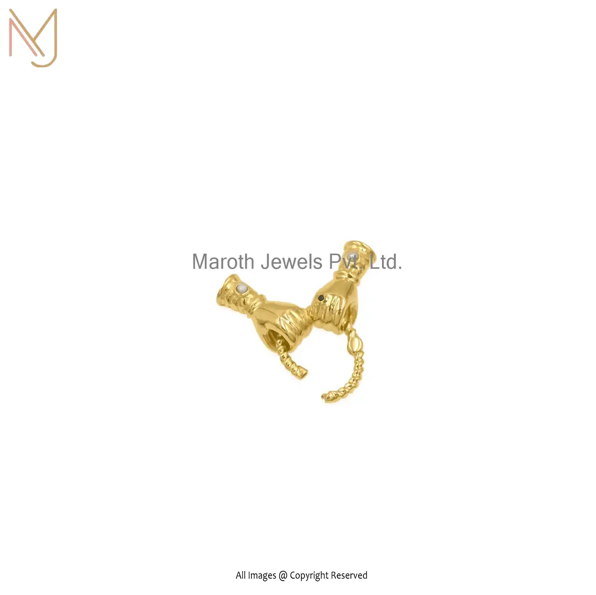 925 Silver Yellow Gold Pearl and Black Onyx Charm Holder Jewelry Supplier
