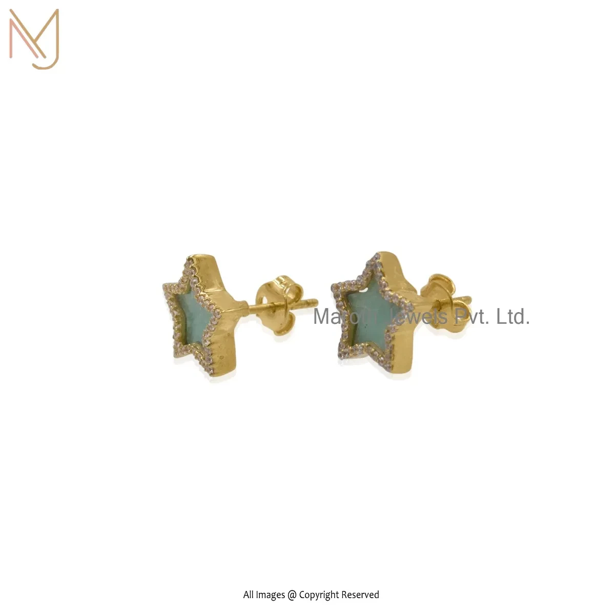 925 Silver Yellow Gold Plated Amazonite And Cubic Zircon Star Earring Jewelry Supplier