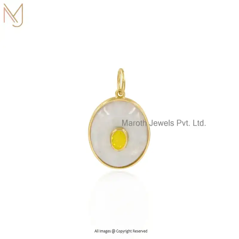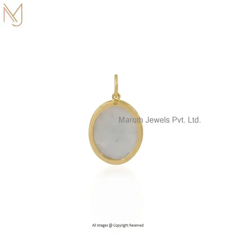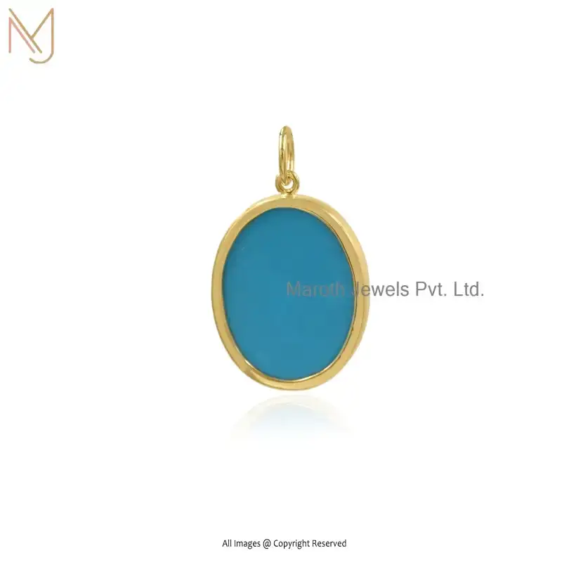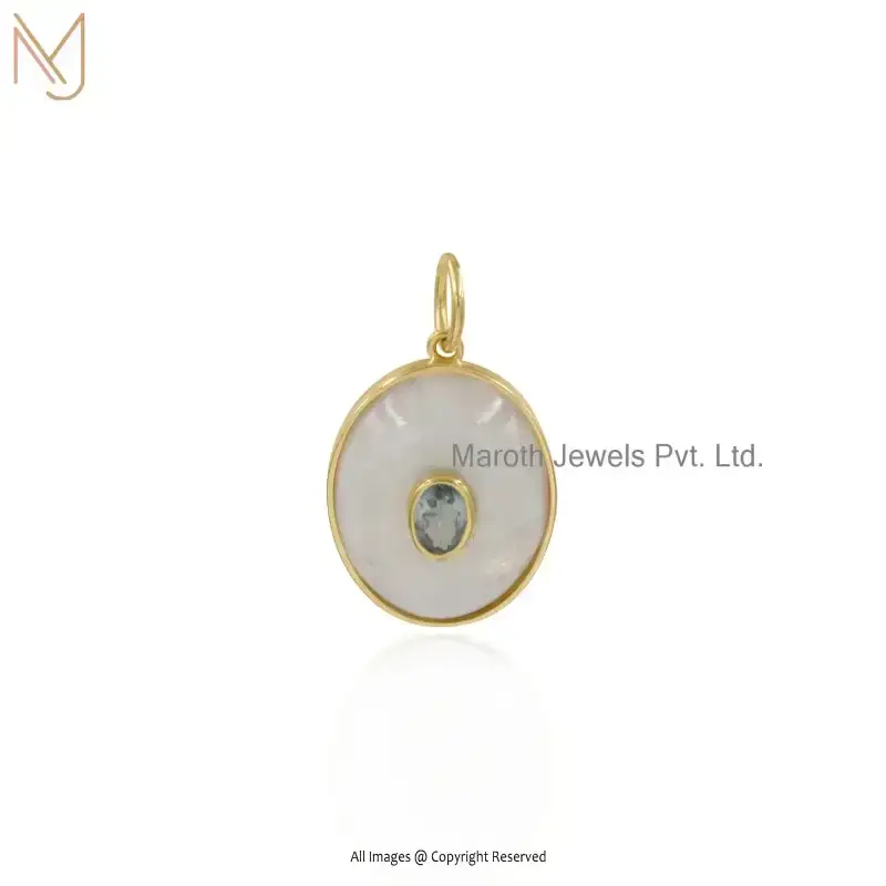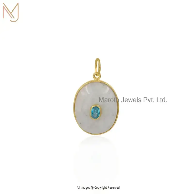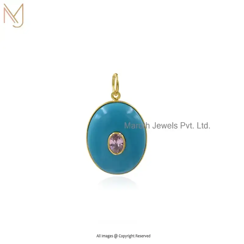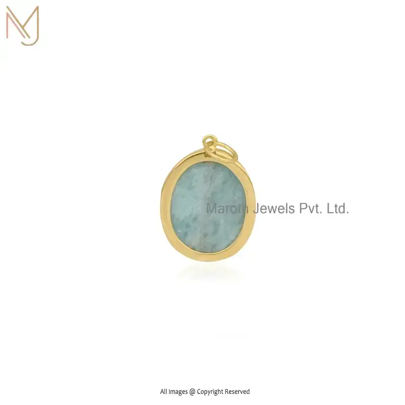 925 Silver Yellow Gold Plated Amazonite & Blue Topaz Oval Handmade Gemstone Pendant Jewelry Supplier