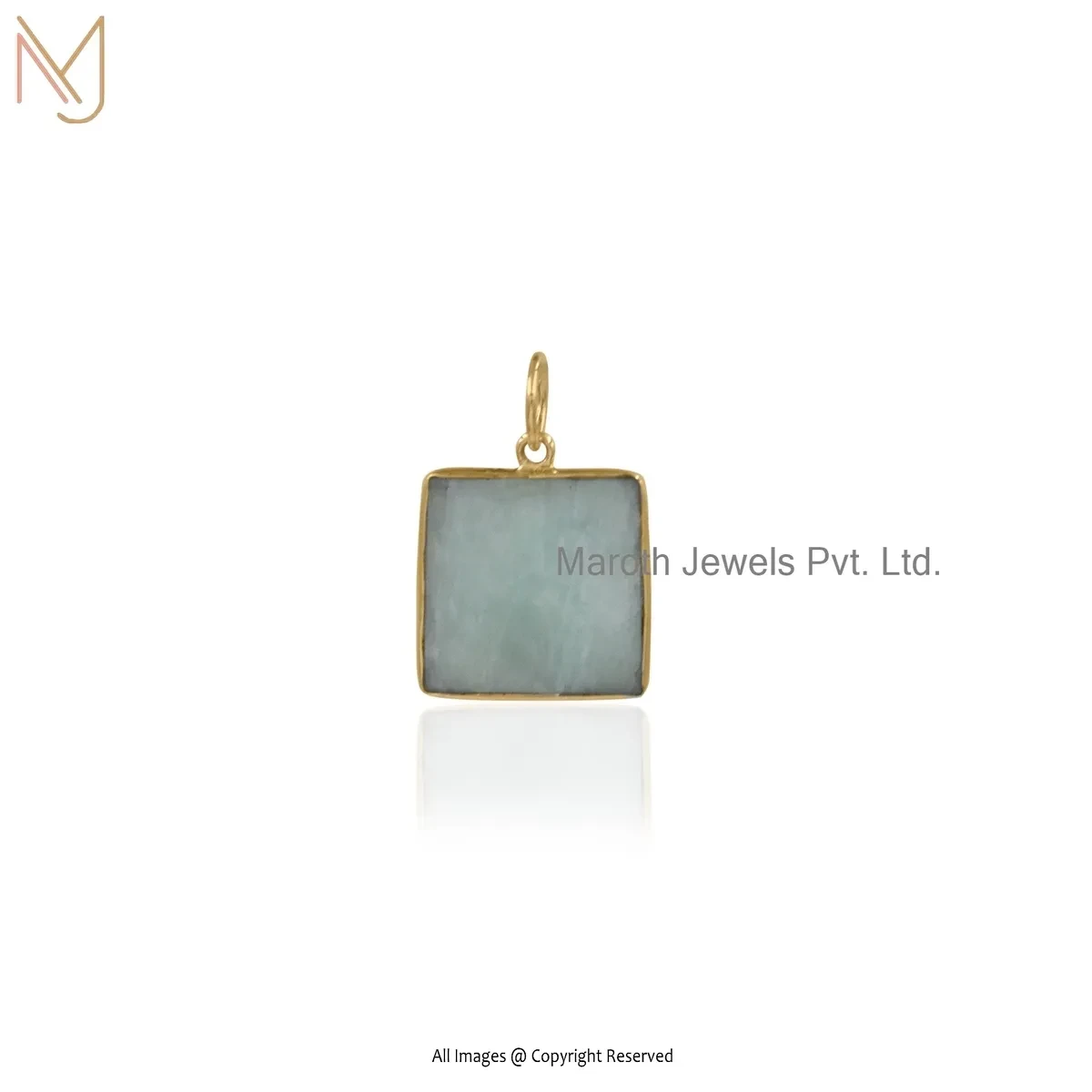 925 Silver Yellow Gold Plated Amazonite Face Pendant Custom Jewelry
