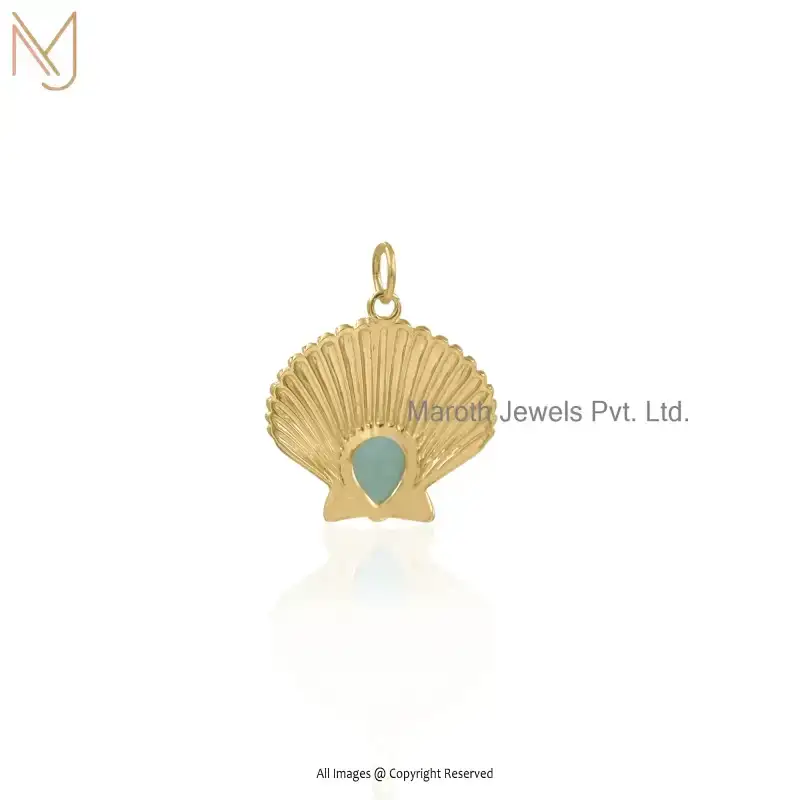 925 Silver Yellow Gold Plated Amazonite Sea Shell Charm Pendant Manufacturer