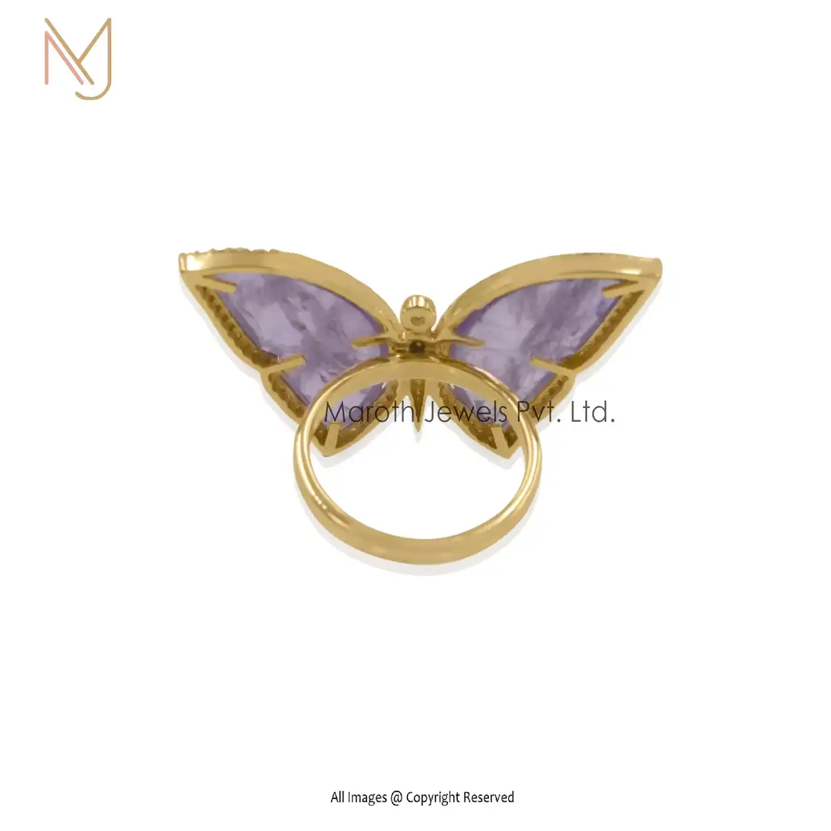 925 Silver Yellow Gold Plated Amethyst And Moissanite Butterfly Ring Manufacturer