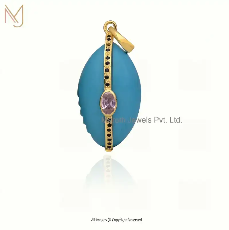 925 Silver Yellow Gold Plated Amethyst Cubic Zircon & Pink Sapphire Shell Pendant