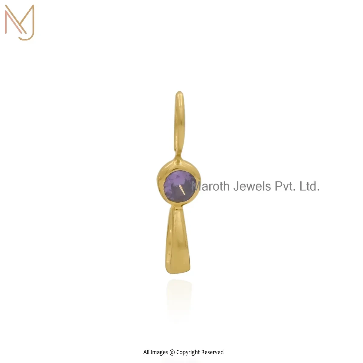 925 Silver Yellow Gold Plated Amethyst Loop Round Solitaire Pendant Manufacturer