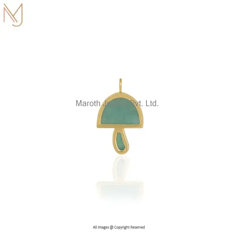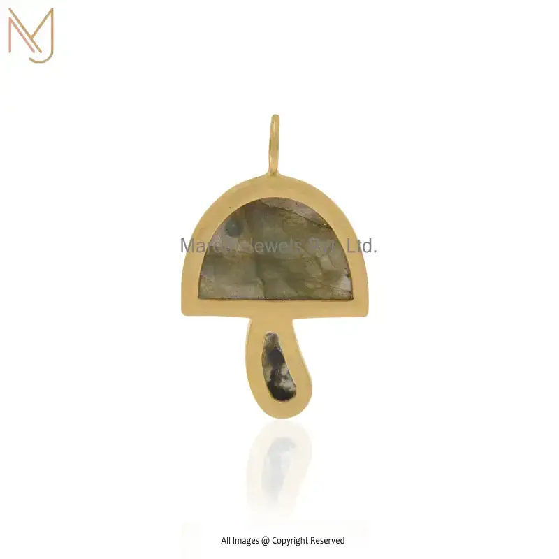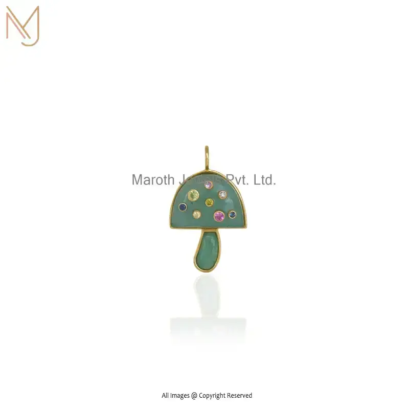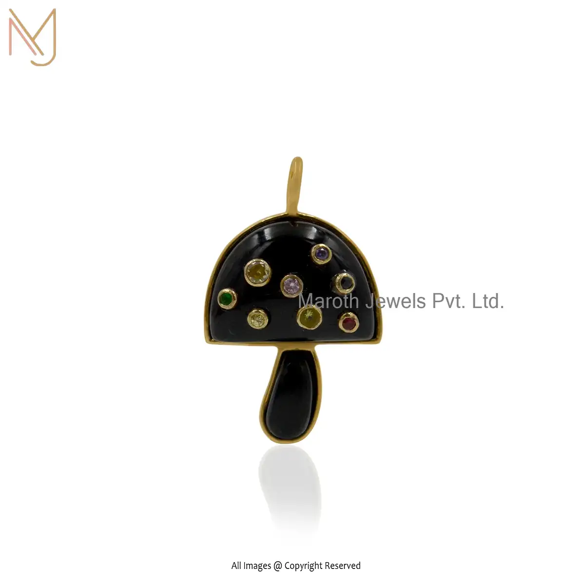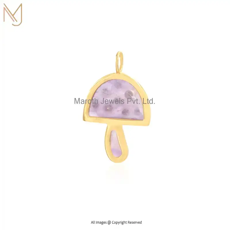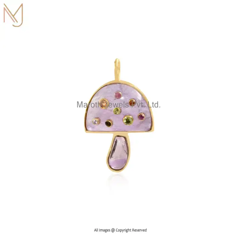 925 Silver Yellow Gold Plated Amethyst & Multi Gem Stone Mushroom Pendant USA