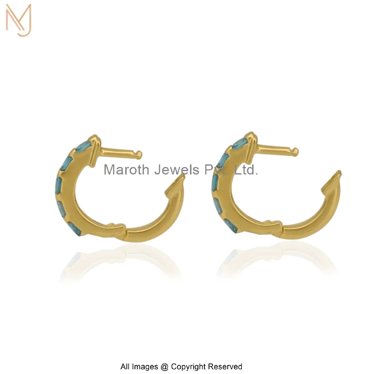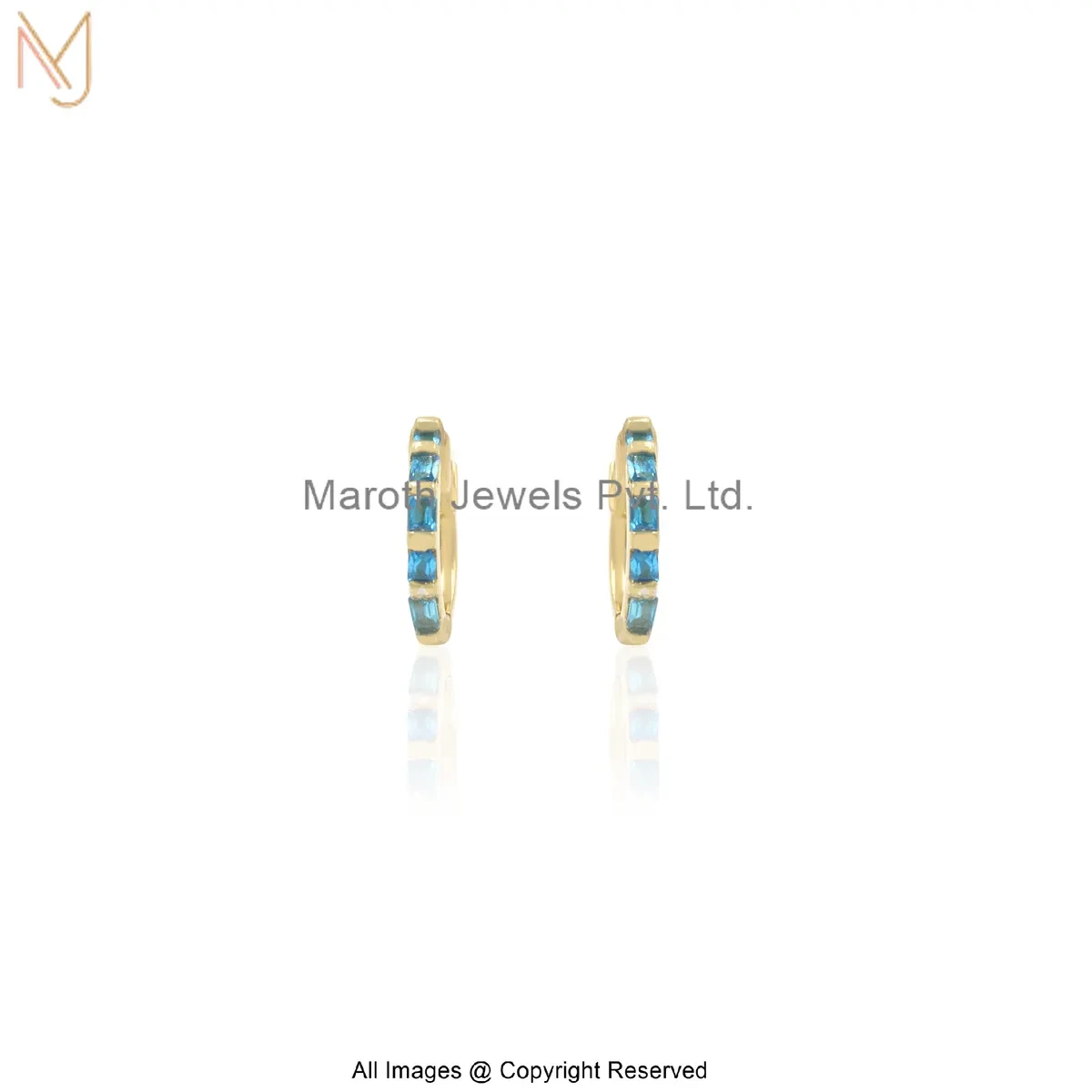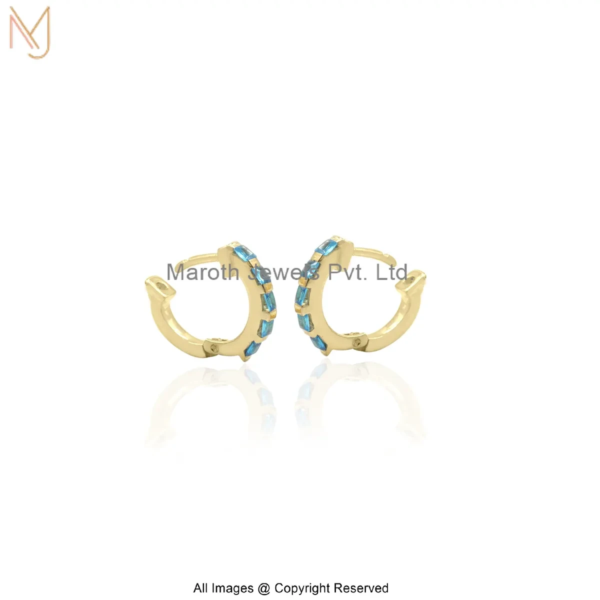 925 Silver Yellow Gold Plated Aquamarine Baguette-Cut Huggie Hoop Earring Manufacturer