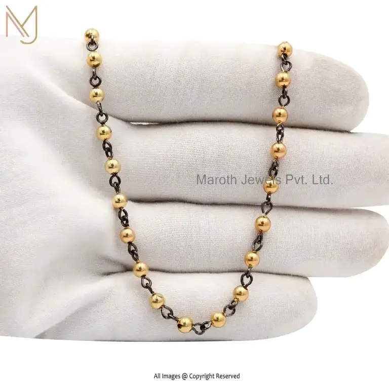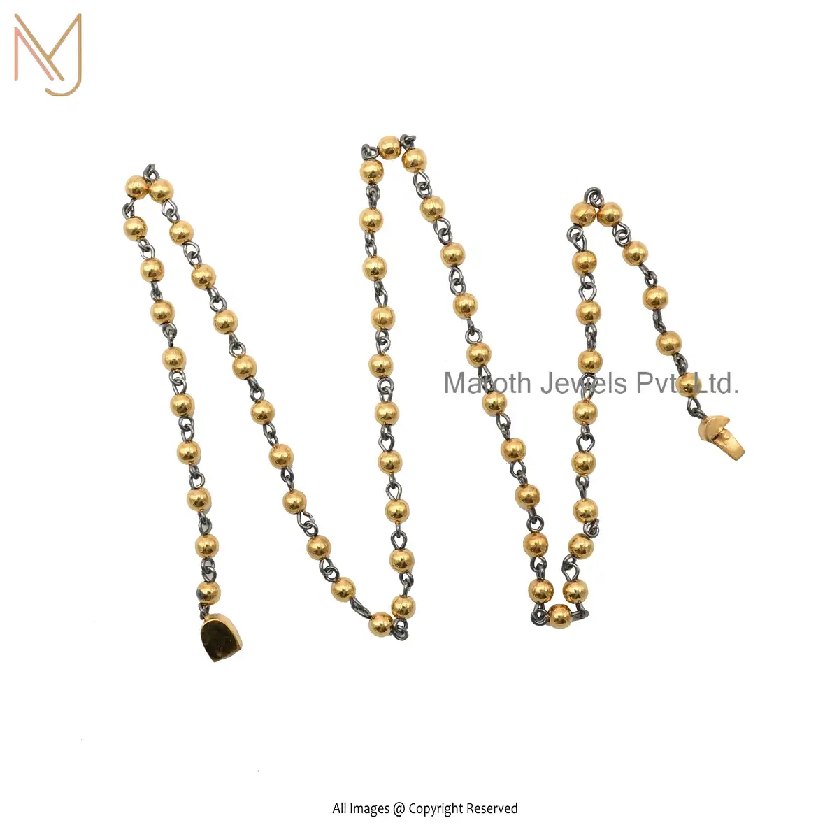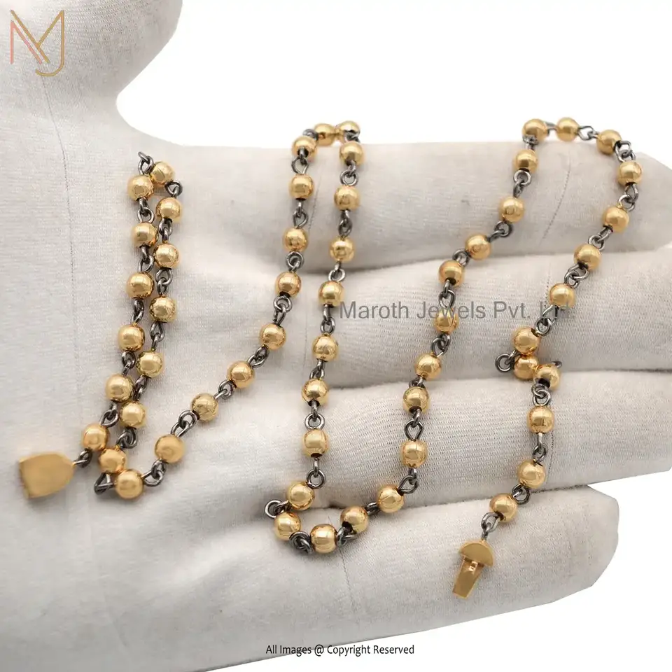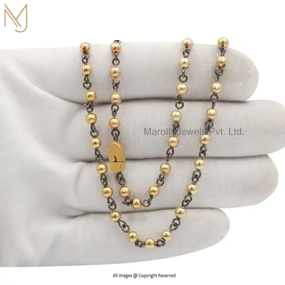 925 Silver Yellow Gold Plated Beads And Chain Necklace Manufacturer