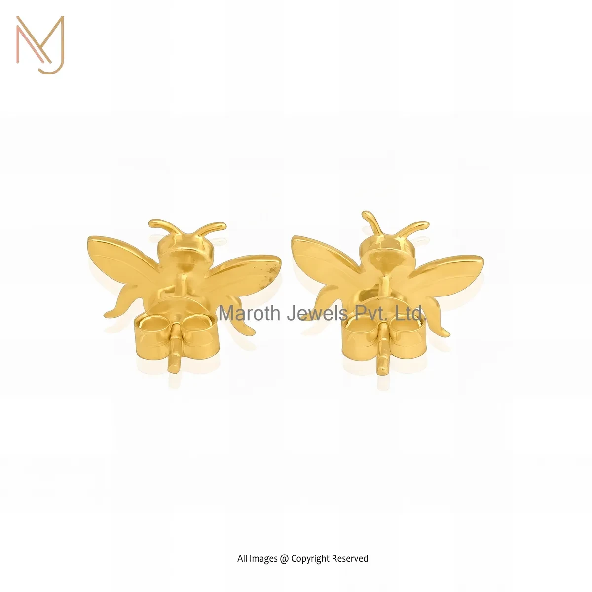 925 Silver Yellow Gold Plated Bee Stud Earrings Manufacturer