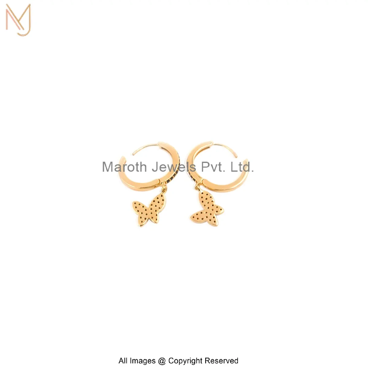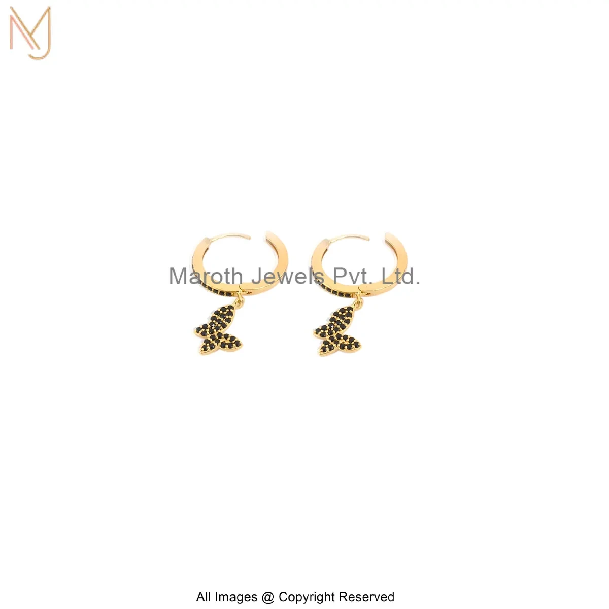 925 Silver Yellow Gold Plated Black Cubic Zircon Butterfly Hoop Earring Manufacturer