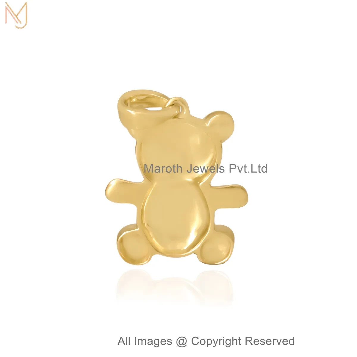 925 Silver Yellow Gold Plated Black Cubic Zircon Cute Teddy Bear Gold Pendant Jewelry Supplier