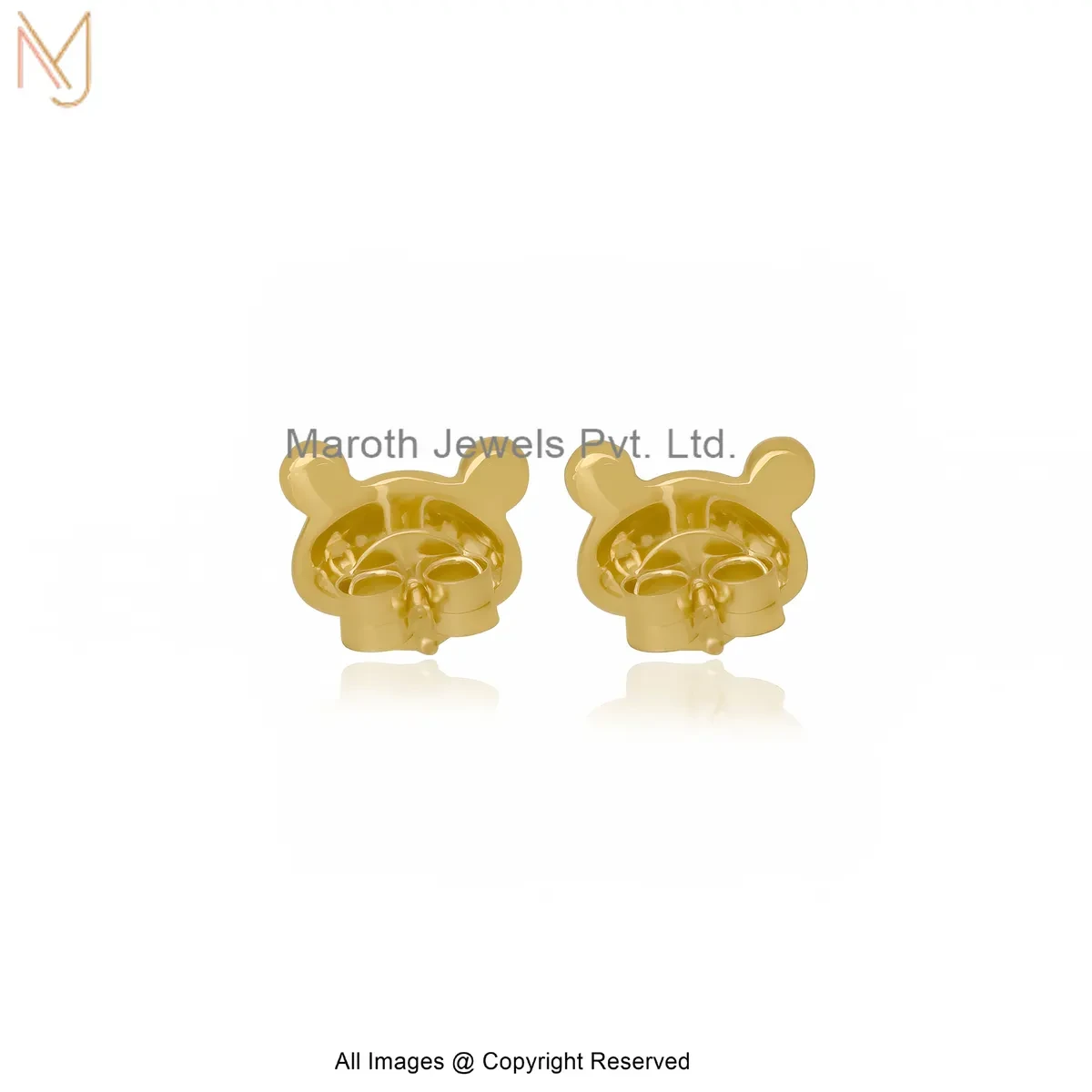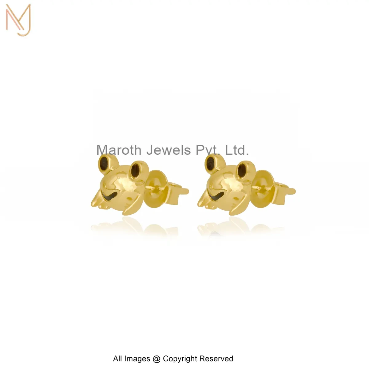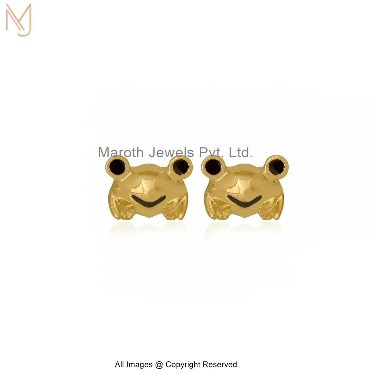 925 Silver Yellow Gold Plated Black Enamel Cute Frog Face Gold Stud Earrings Jewelry Supplier