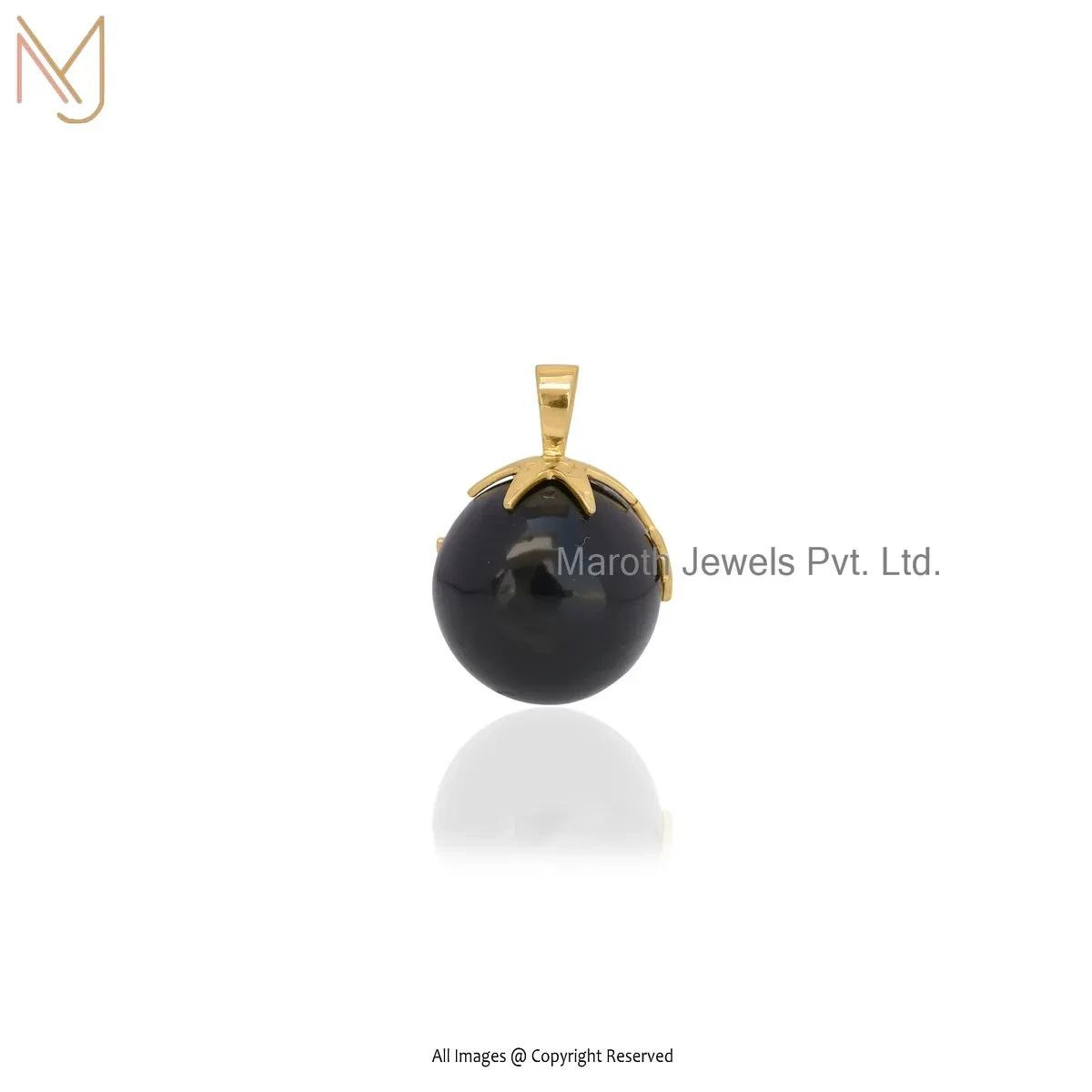 925 Silver Yellow Gold Plated Black Onyx Ball Star Pendant Jewelry Supplier
