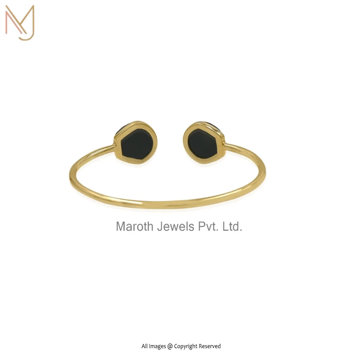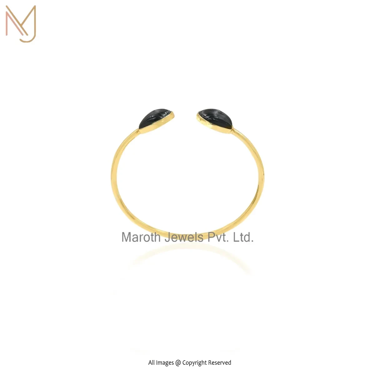 925 Silver Yellow Gold Plated Black Onyx Shell Bracelet Custom Jewelry