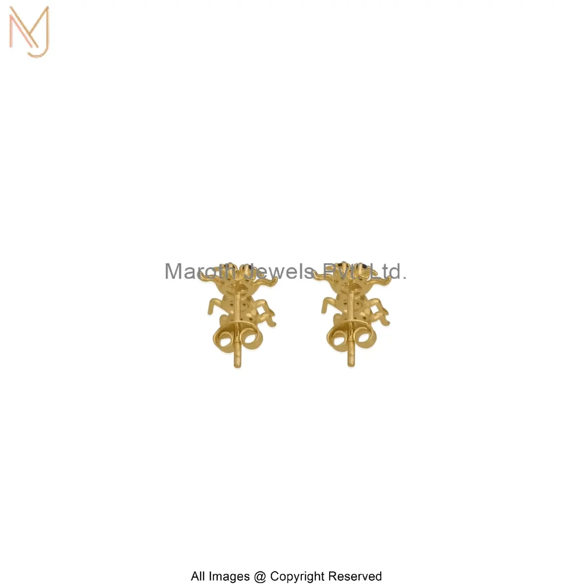 925 Silver Yellow Gold Plated Black Spinel Ant Stud Earrings Custom Jewelry