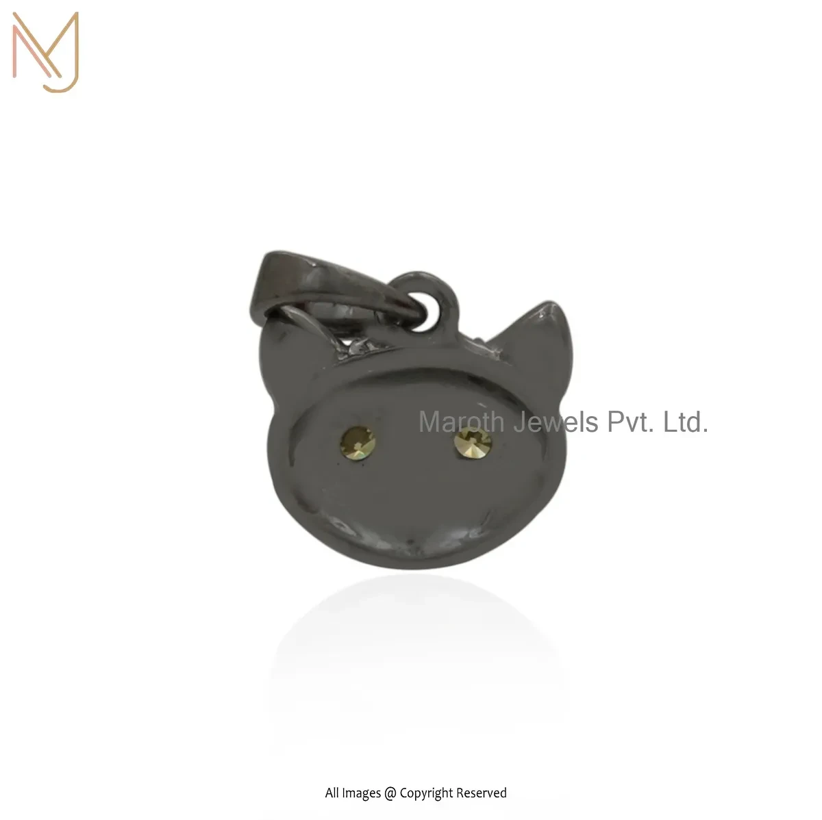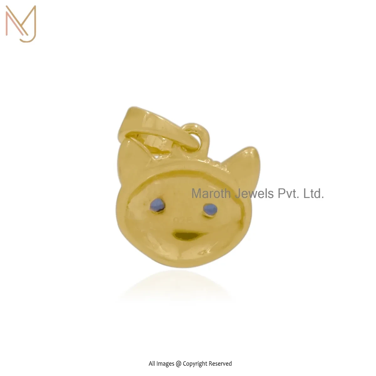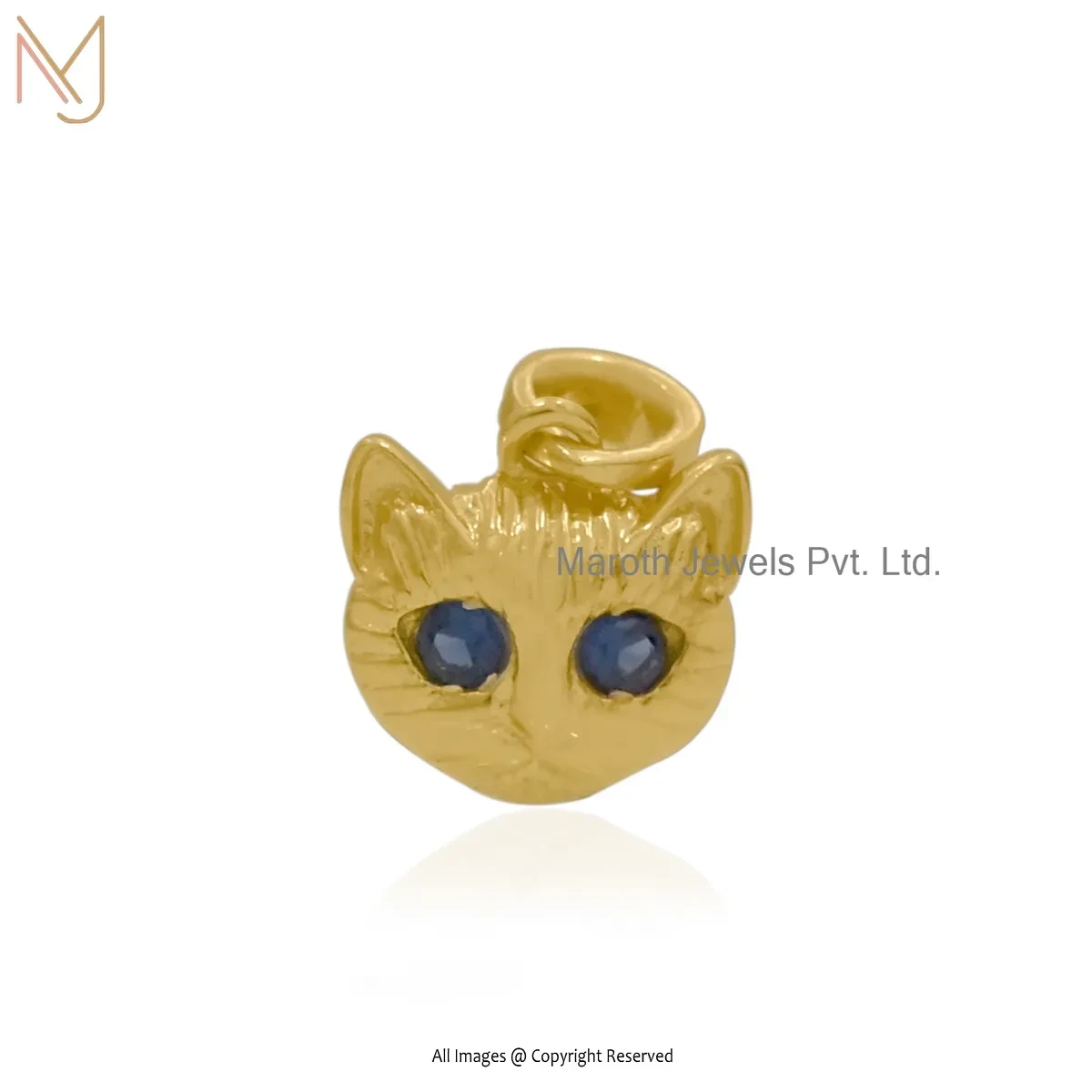 925 Silver Yellow Gold Plated Blue Sapphire Cat Face Pendant Jewelry Supplier