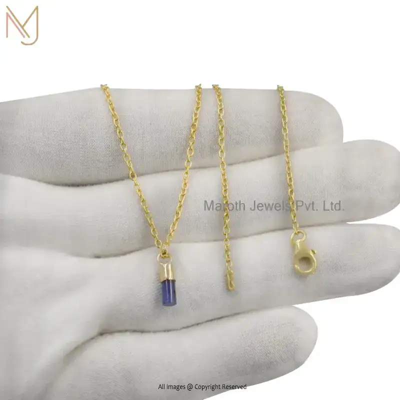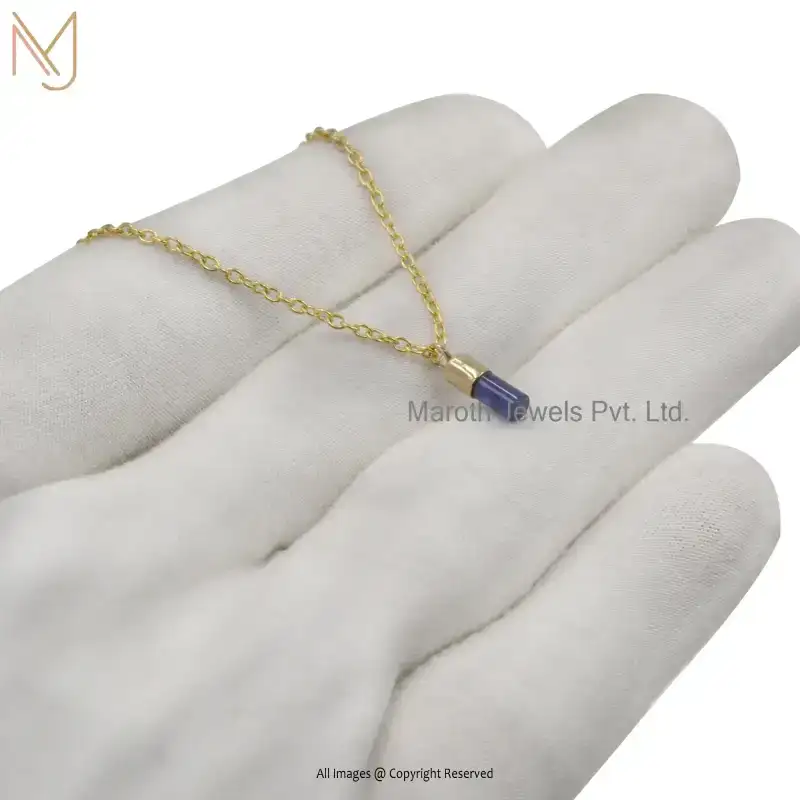 925 Silver Yellow Gold Plated Blue Sapphire Gemstone Blue Tiny Pendant USA