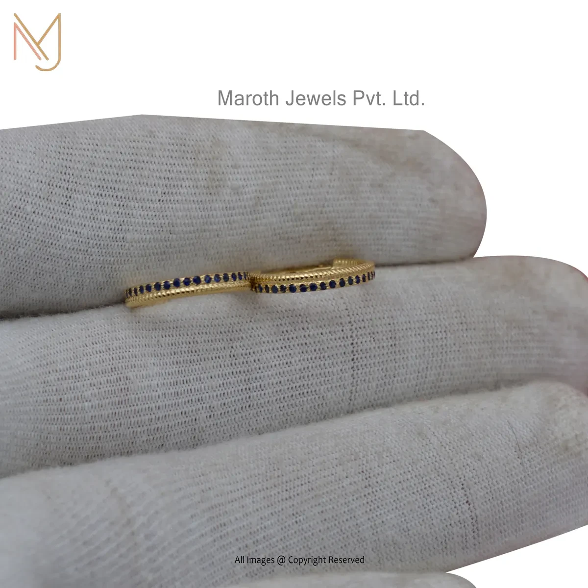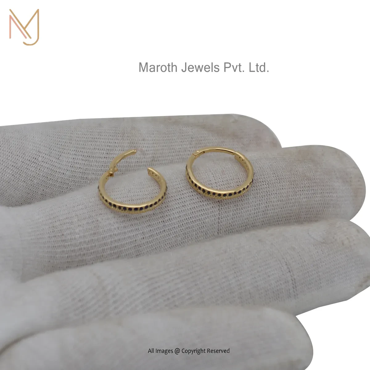 925 Silver Yellow Gold Plated Blue Sapphire Gemstone Huggies Hoop Earring Manufacturer