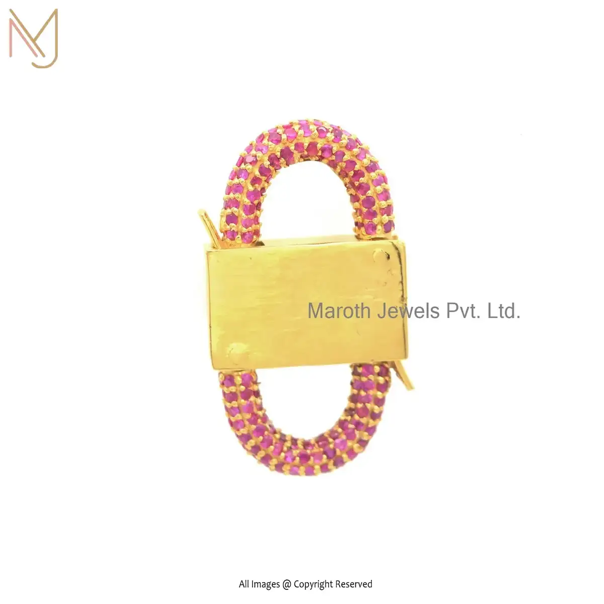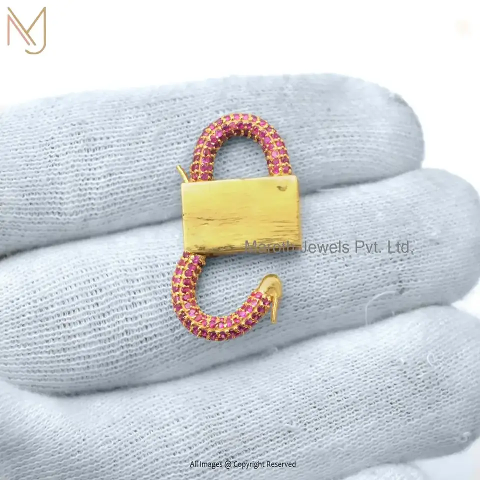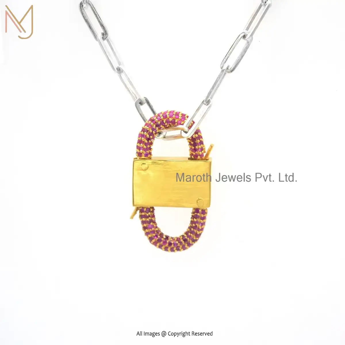 925 Silver Yellow Gold Plated Blue Sapphire Gemstone Padlock Finding Pendant Jewelry USA