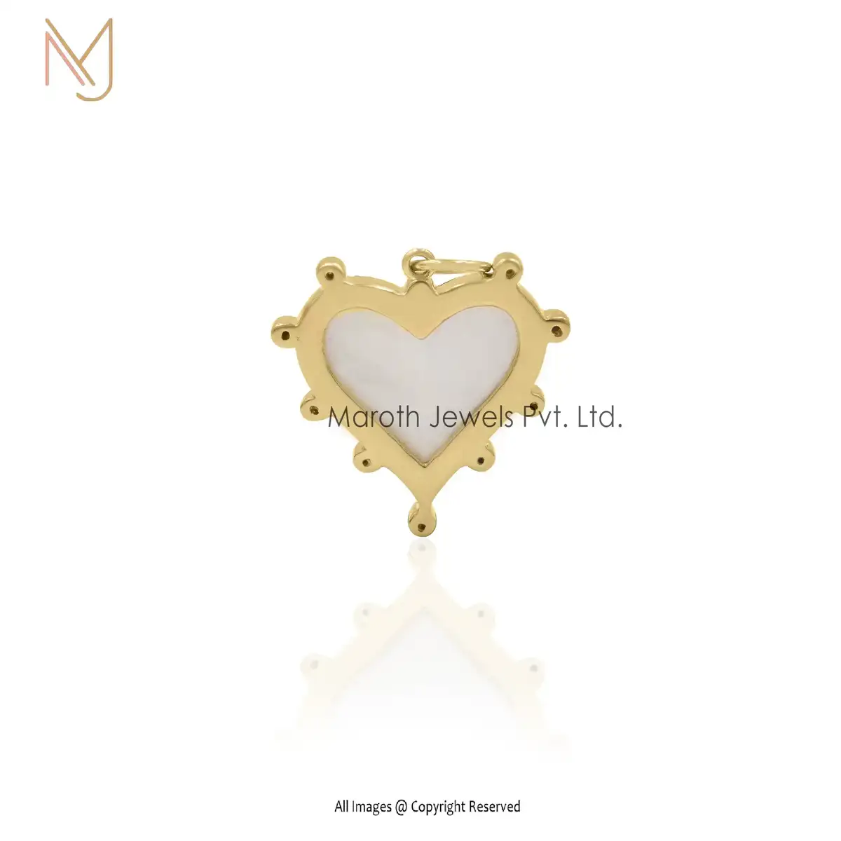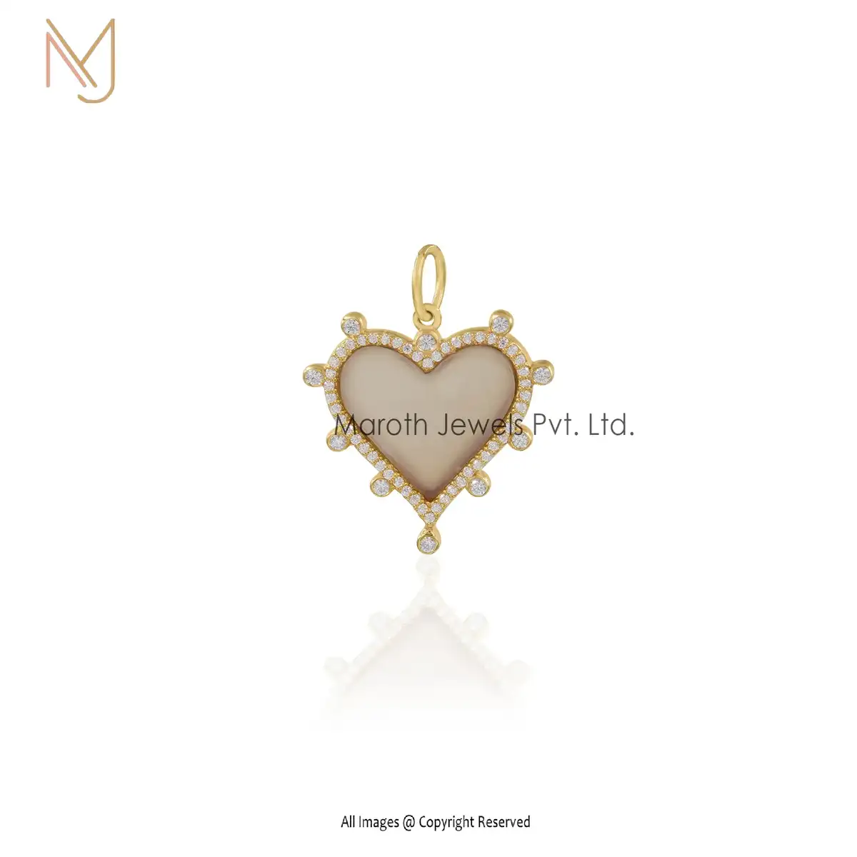 925 Silver Yellow Gold Plated Chalcedony & Moissanite Heart Pendant Custom Jewelry