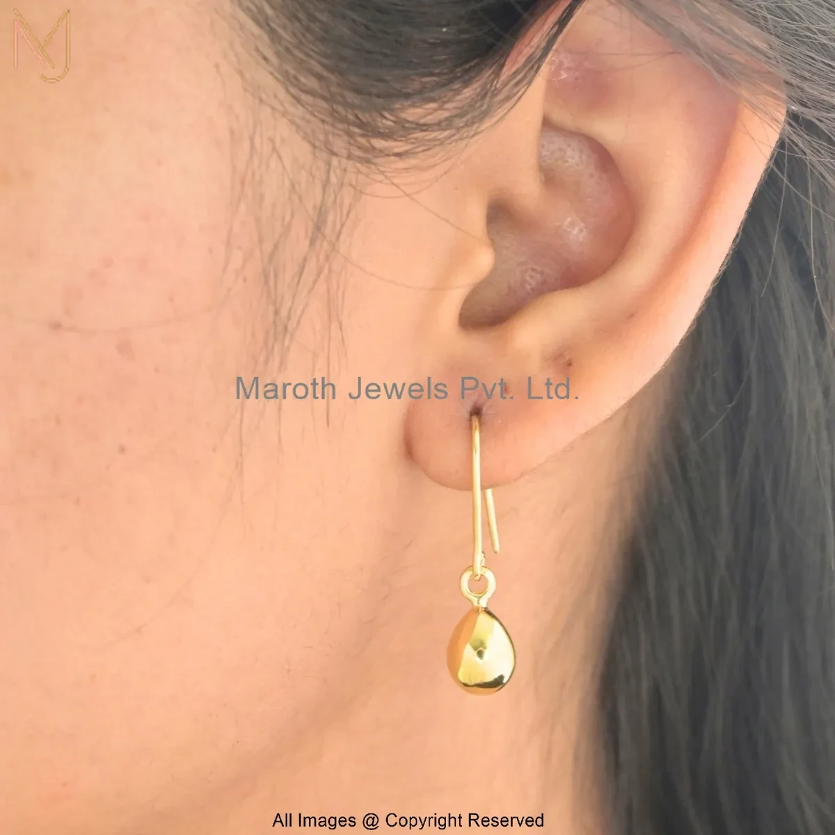 925 Silver Yellow Gold Plated Classic Teardrop Hook Earrings Custom Jewelry