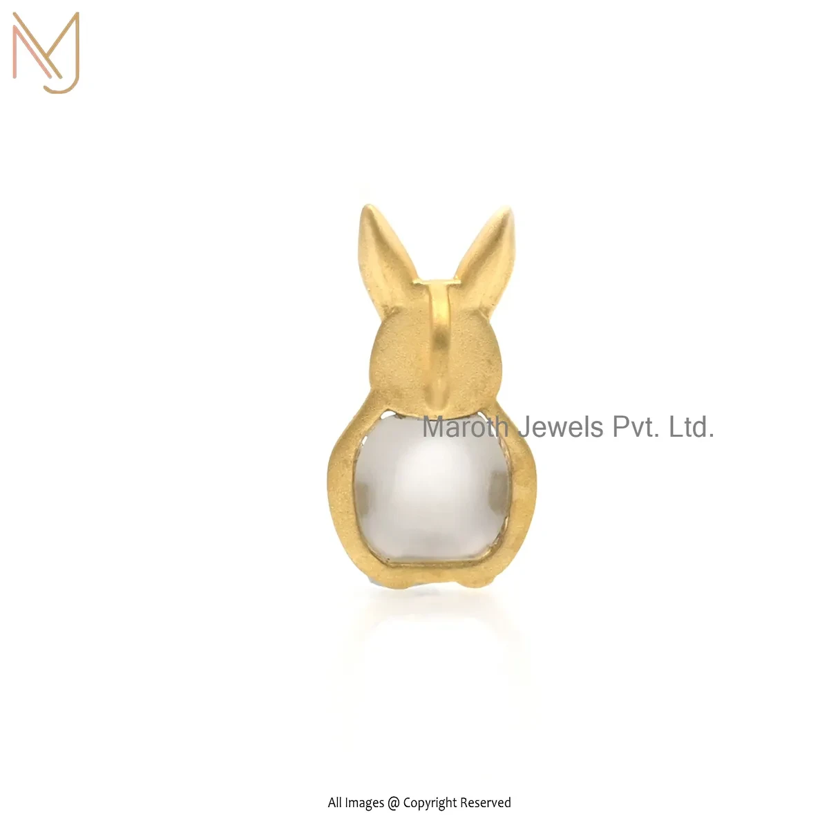 925 Silver Yellow Gold Plated Clear Quartz Gemstone Rabbit Charm Pendant Manufacturer