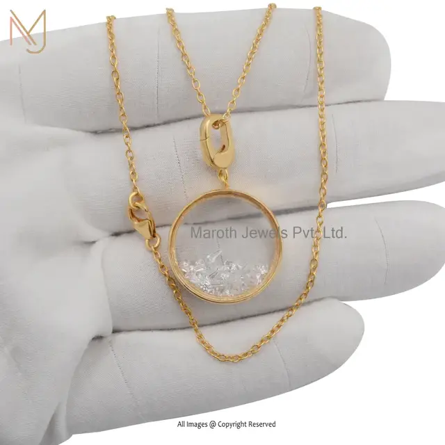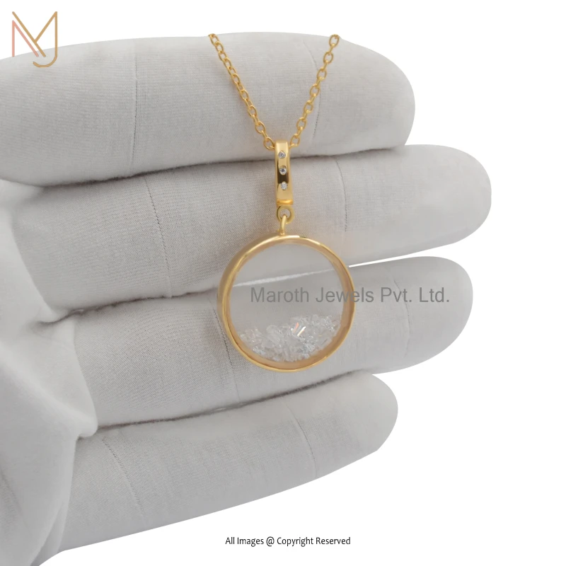 925 Silver Yellow Gold Plated Crystal Quartz Round Shaker Locket Pendant Custom Jewelry