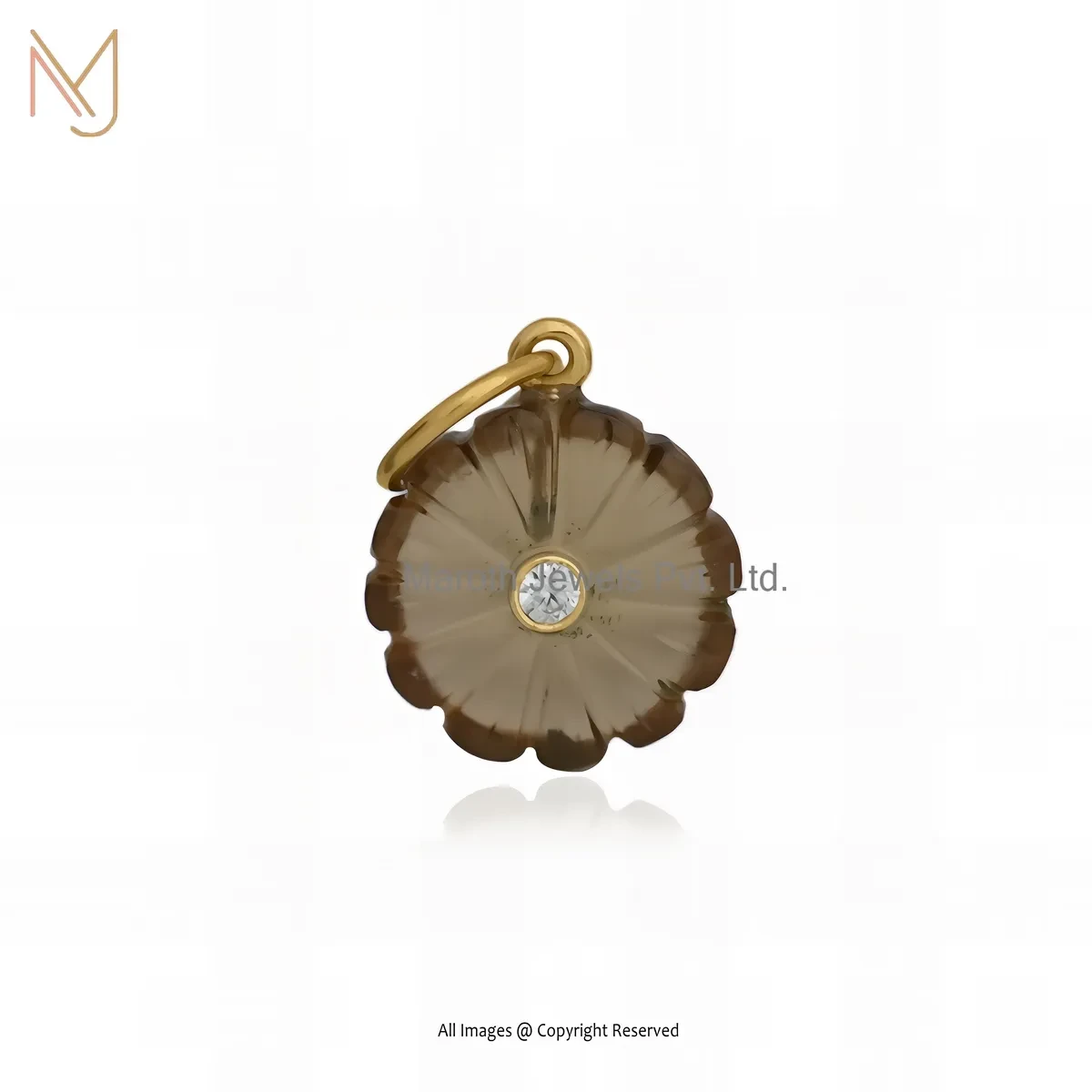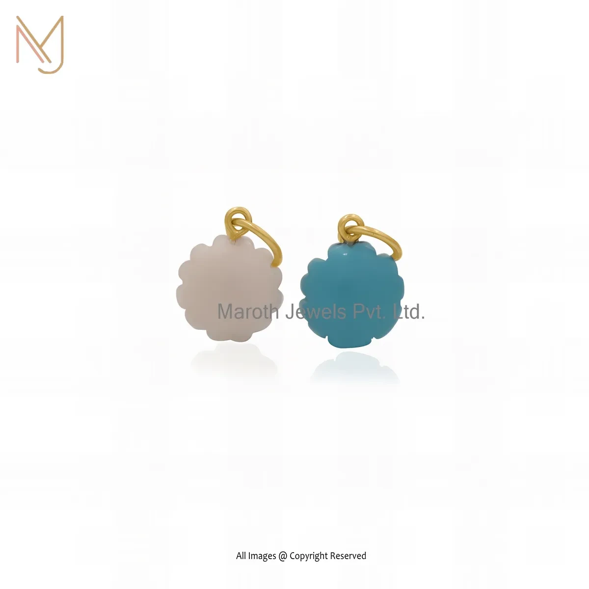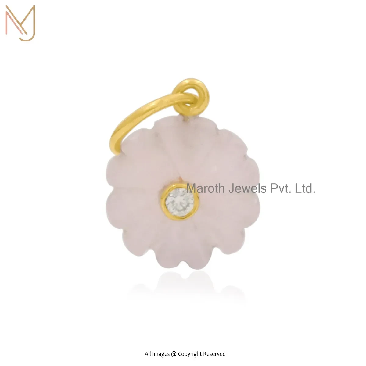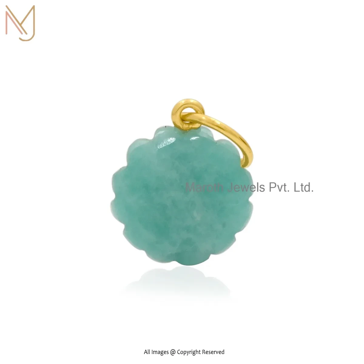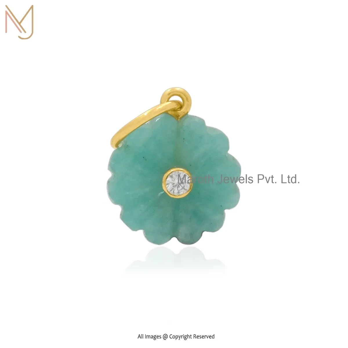 925 Silver Yellow Gold Plated Cubic Zircon & Amazonite Flower Pendant Jewelry Supplier
