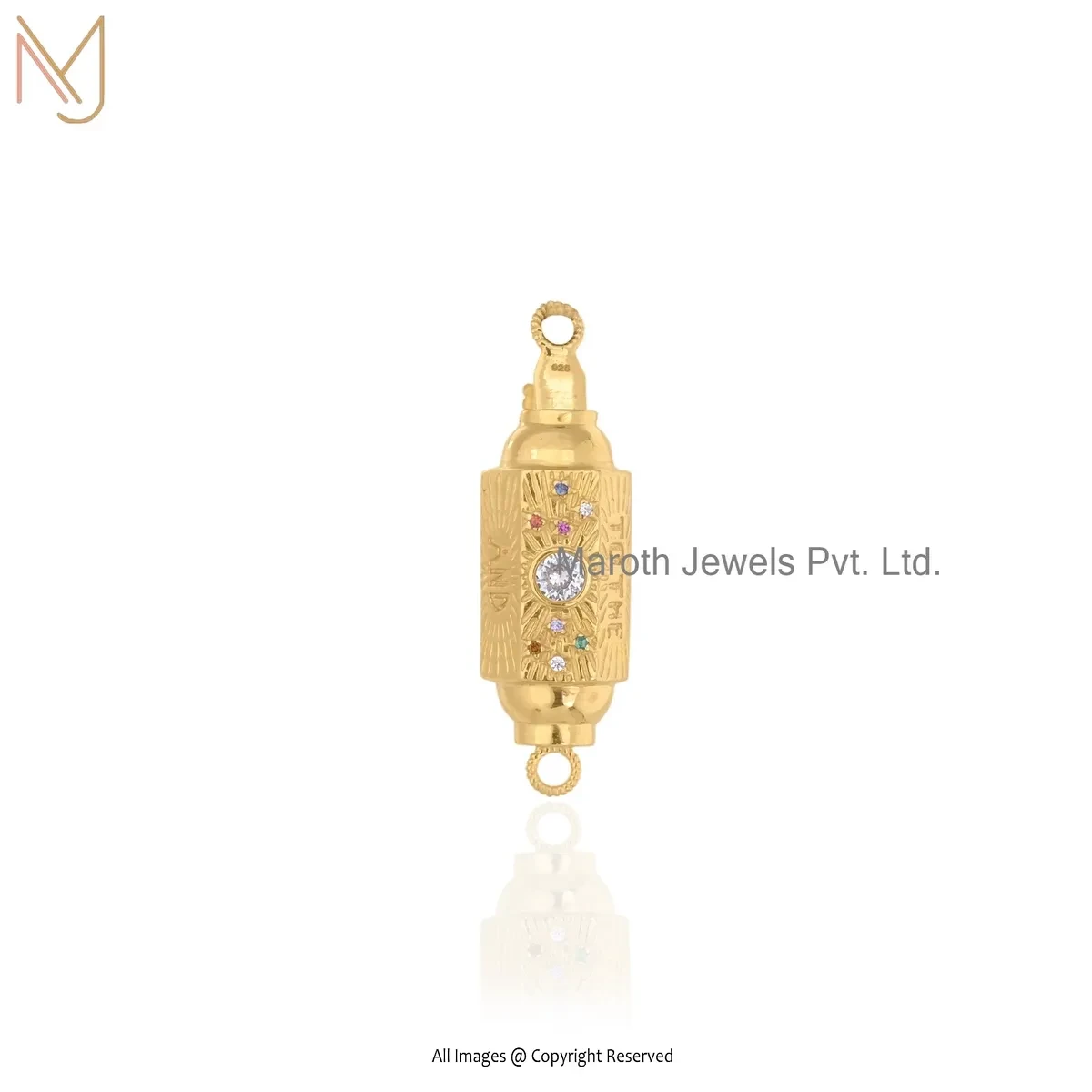 925 Silver Yellow Gold Plated Cubic Zircon Amulet Pendant Manufacturer