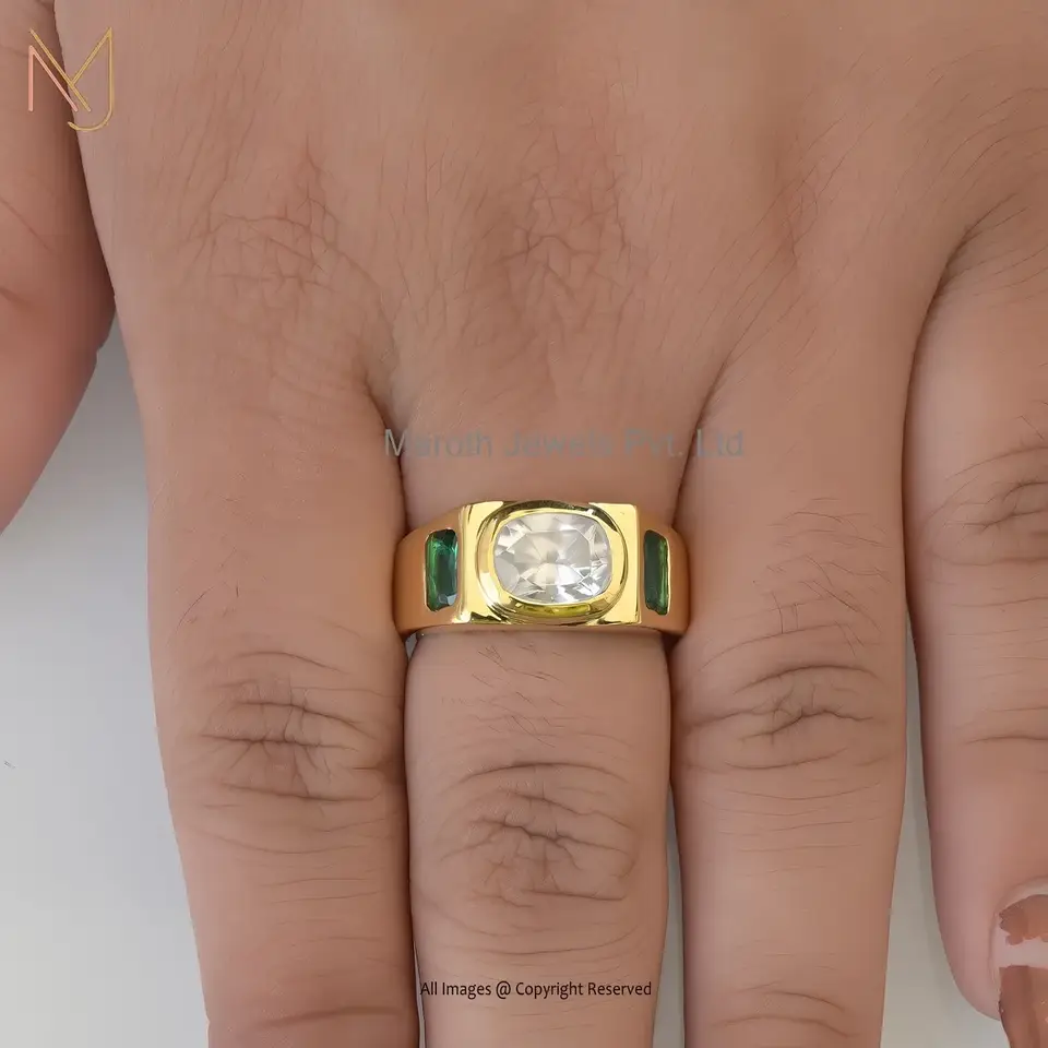 925 Silver Yellow Gold Plated Cubic Zircon And Baguette Brado Cigar Band Ring USA