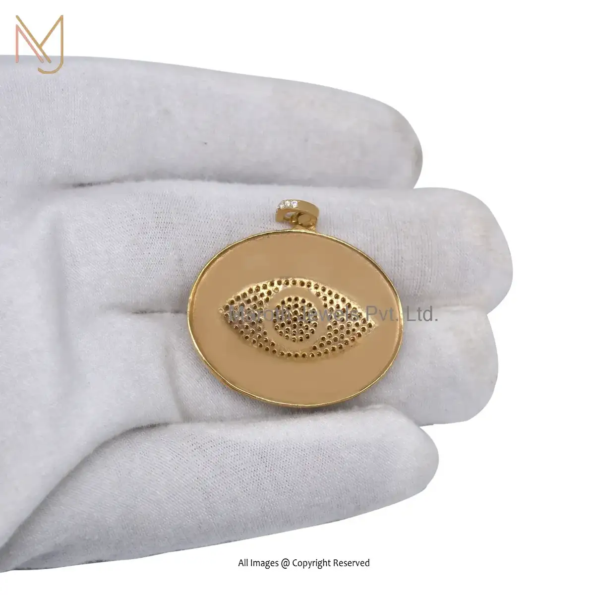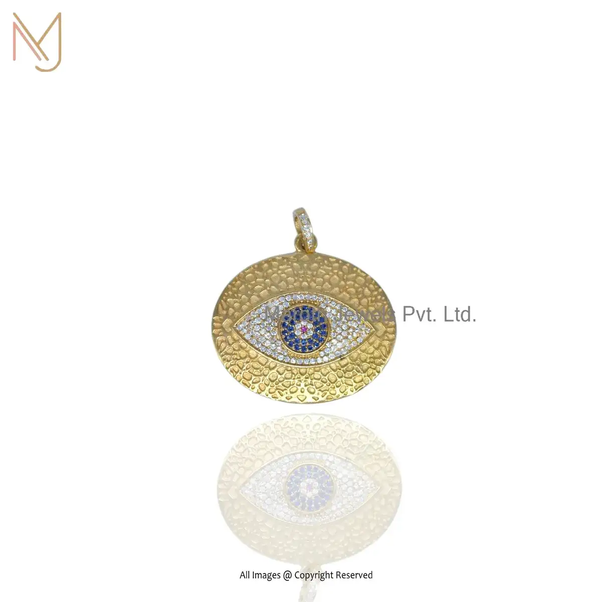 925 Silver Yellow Gold Plated Cubic Zircon And Blue & Pink Sapphire Evil Eye Pendant USA