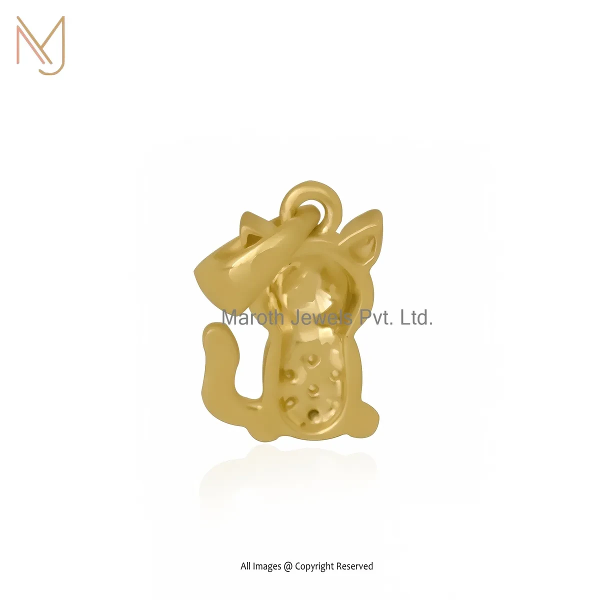 925 Silver Yellow Gold Plated Cubic Zircon Cat Pendant Manufacturer