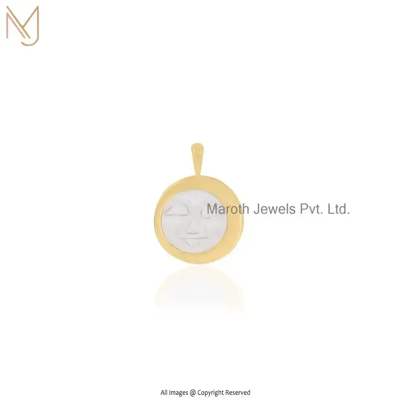 925 Silver Yellow Gold Plated Cubic Zircon & Clear Quartz Moon Face Pendant Jewelry Supplier