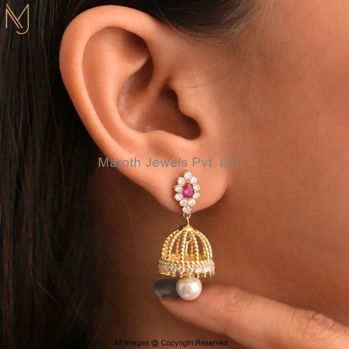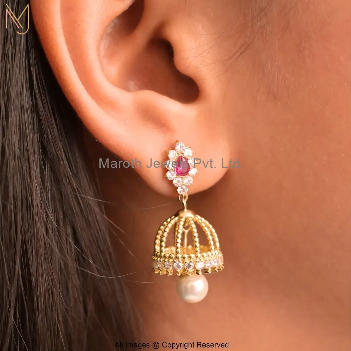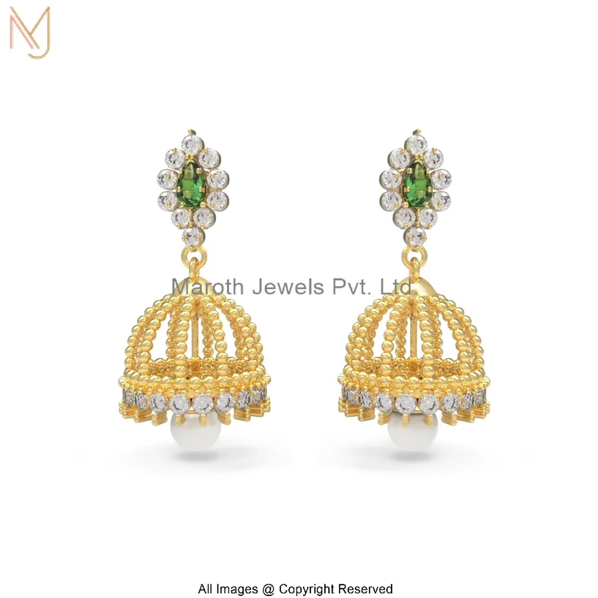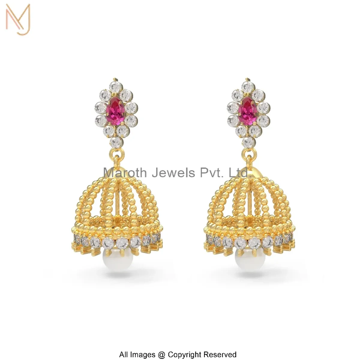 925 Silver Yellow Gold Plated Cubic Zircon Designer Jhumka Earring Custom Jewelry