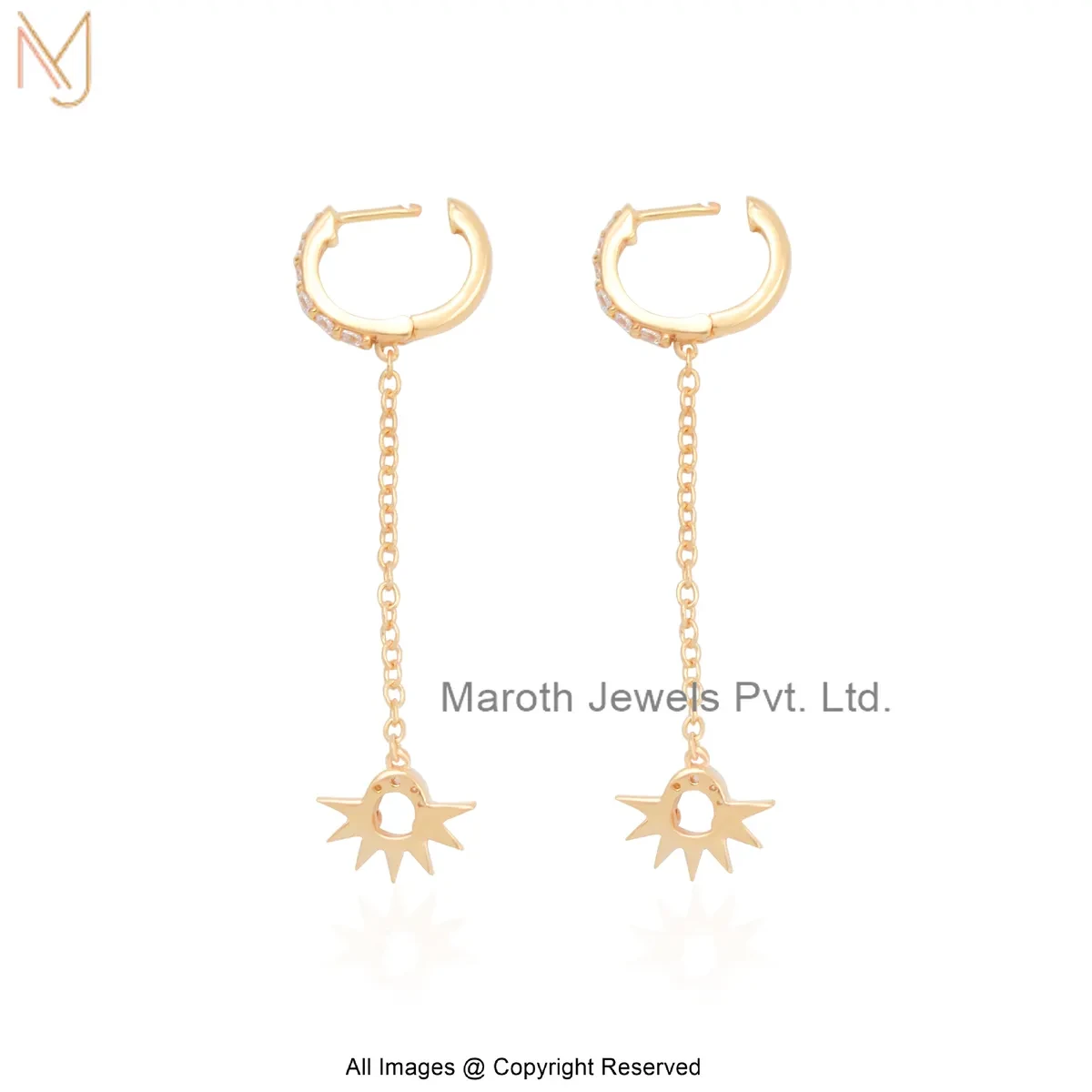 925 Silver Yellow Gold Plated Cubic Zircon Diamond Chain Huggies Dangle Earring Jewelry Supplier