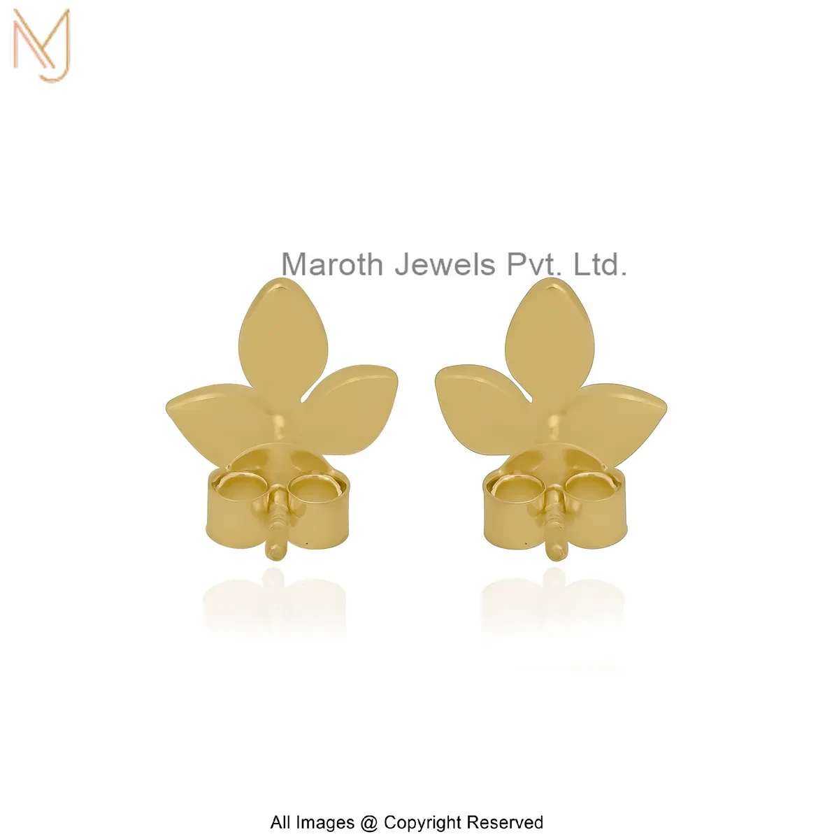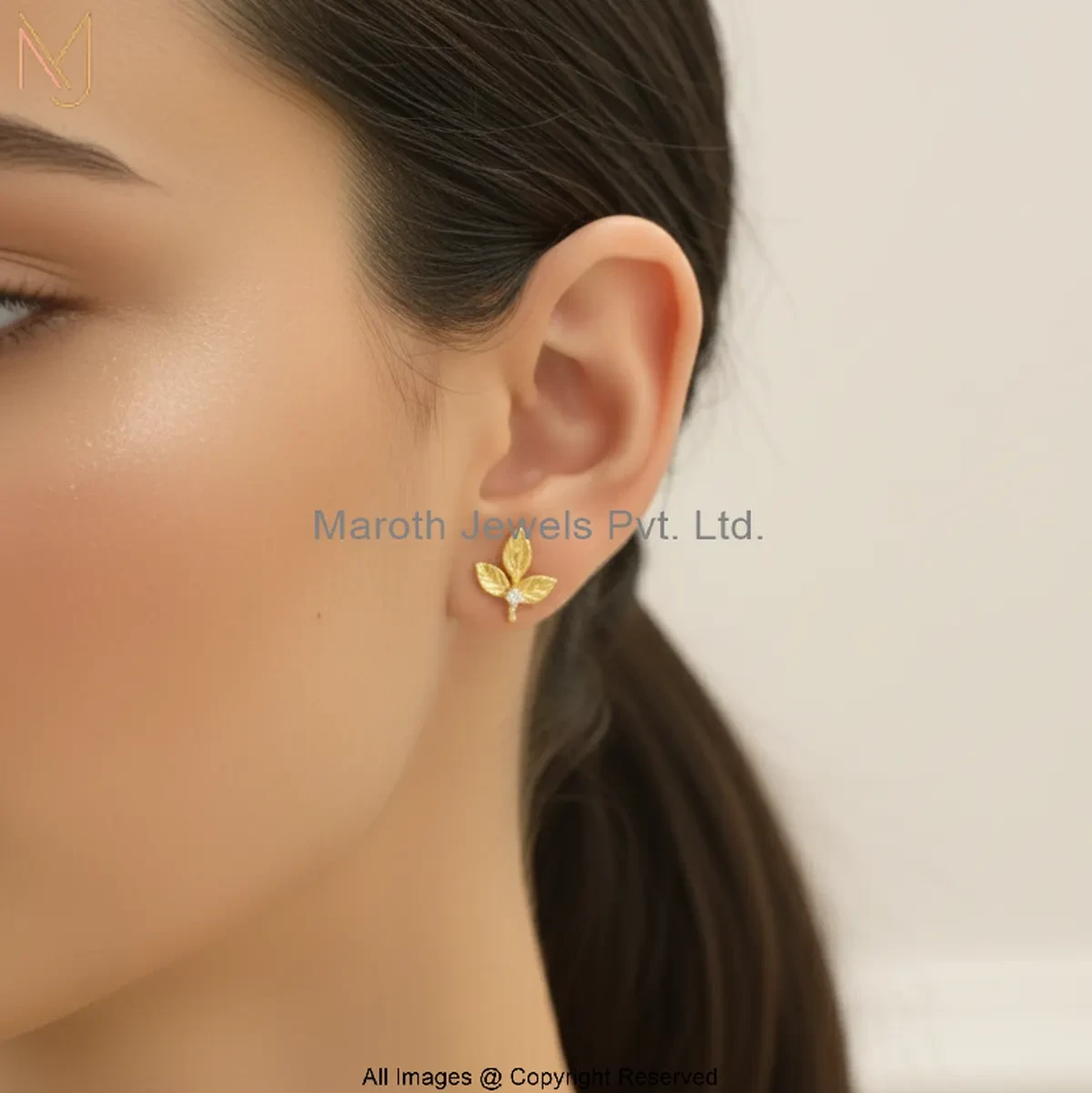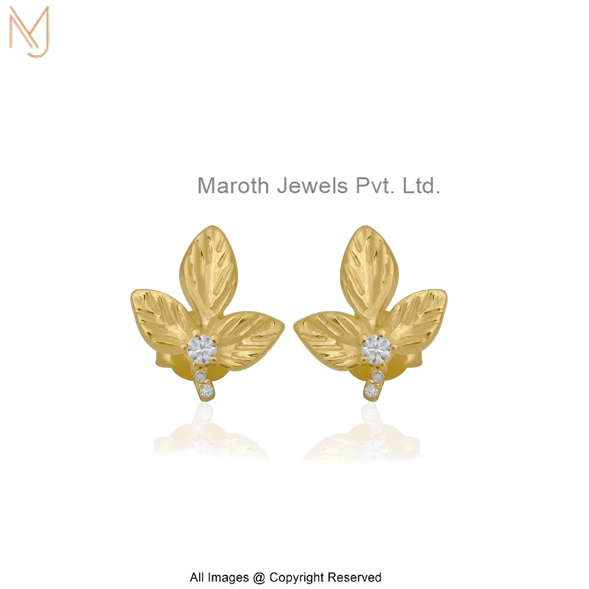925 Silver Yellow Gold Plated Cubic Zircon Diamond Leafs Stud Earring Manufacturer