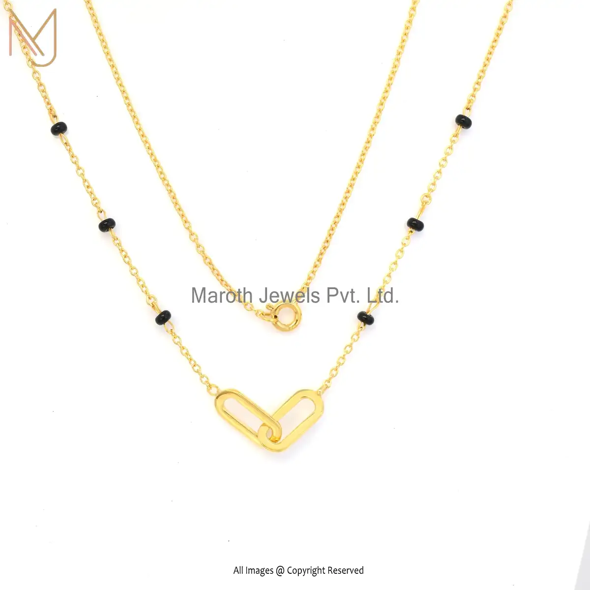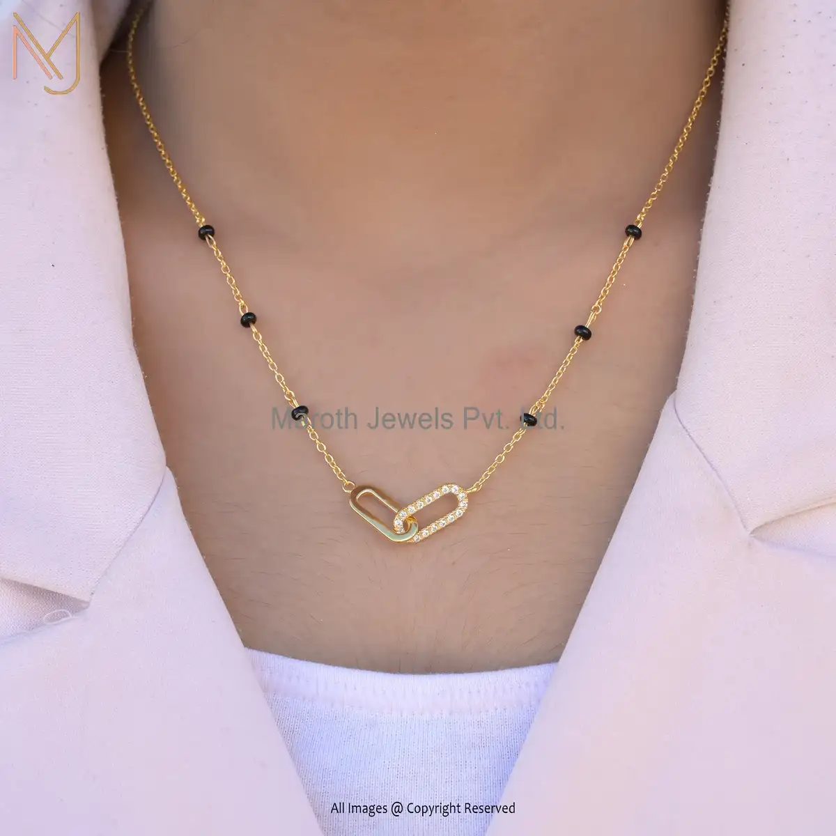 925 Silver Yellow Gold Plated Cubic Zircon Diamond Modern Interlocking Pave Link Mangalsutra Necklace Jewelry USA