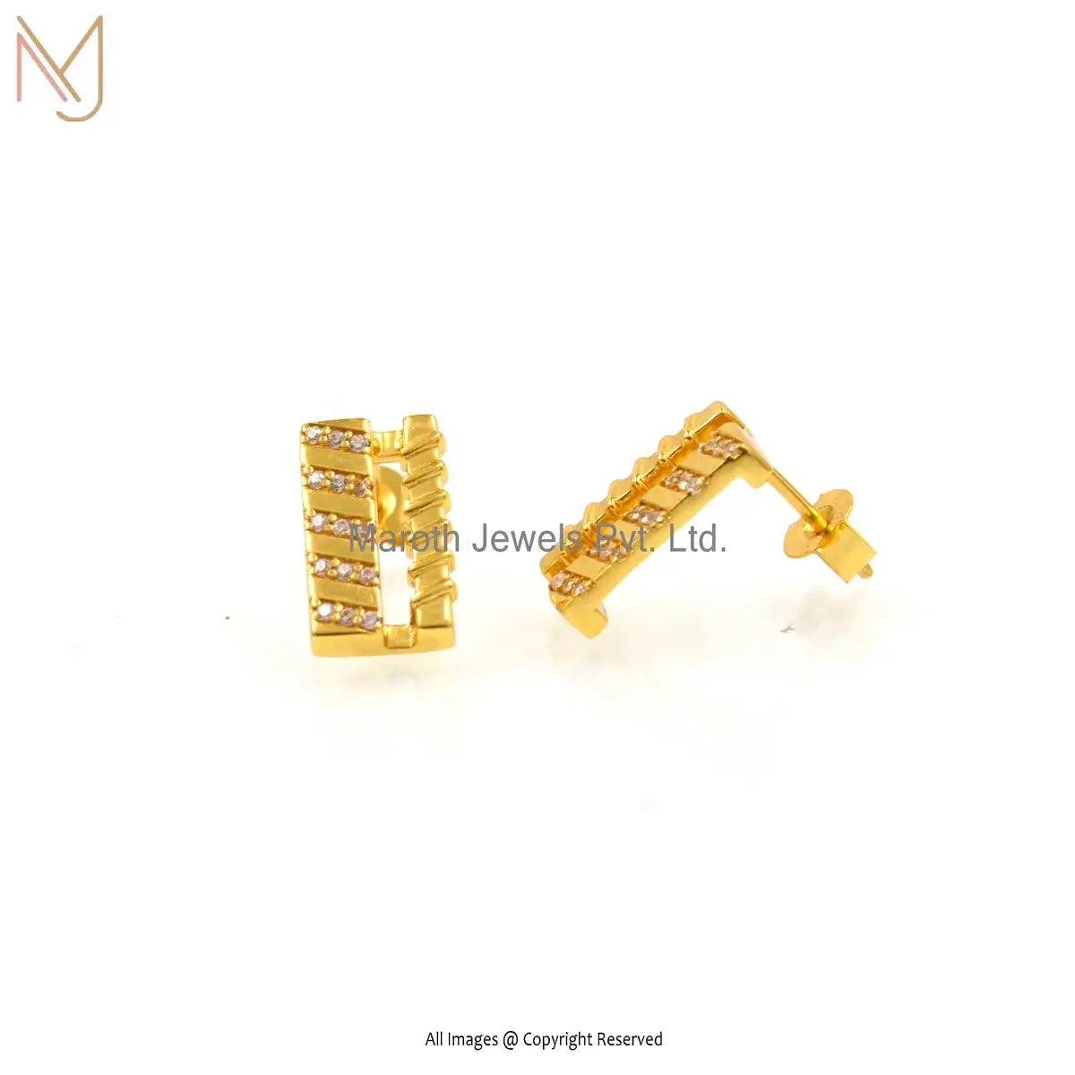 925 Silver Yellow Gold Plated Cubic Zircon Earring Manufacturer