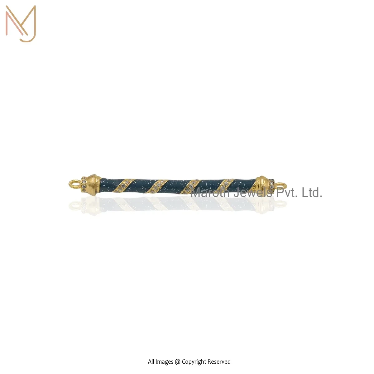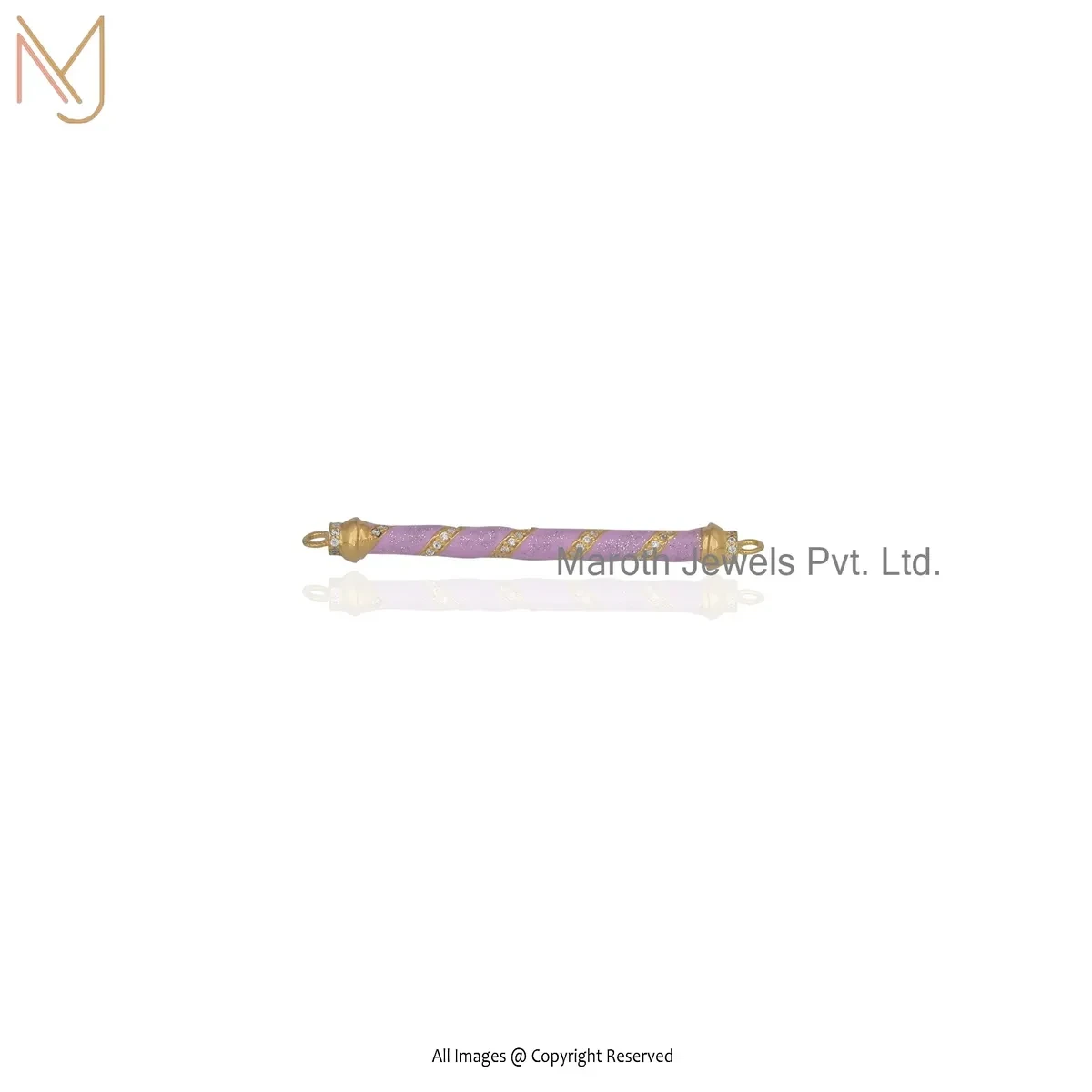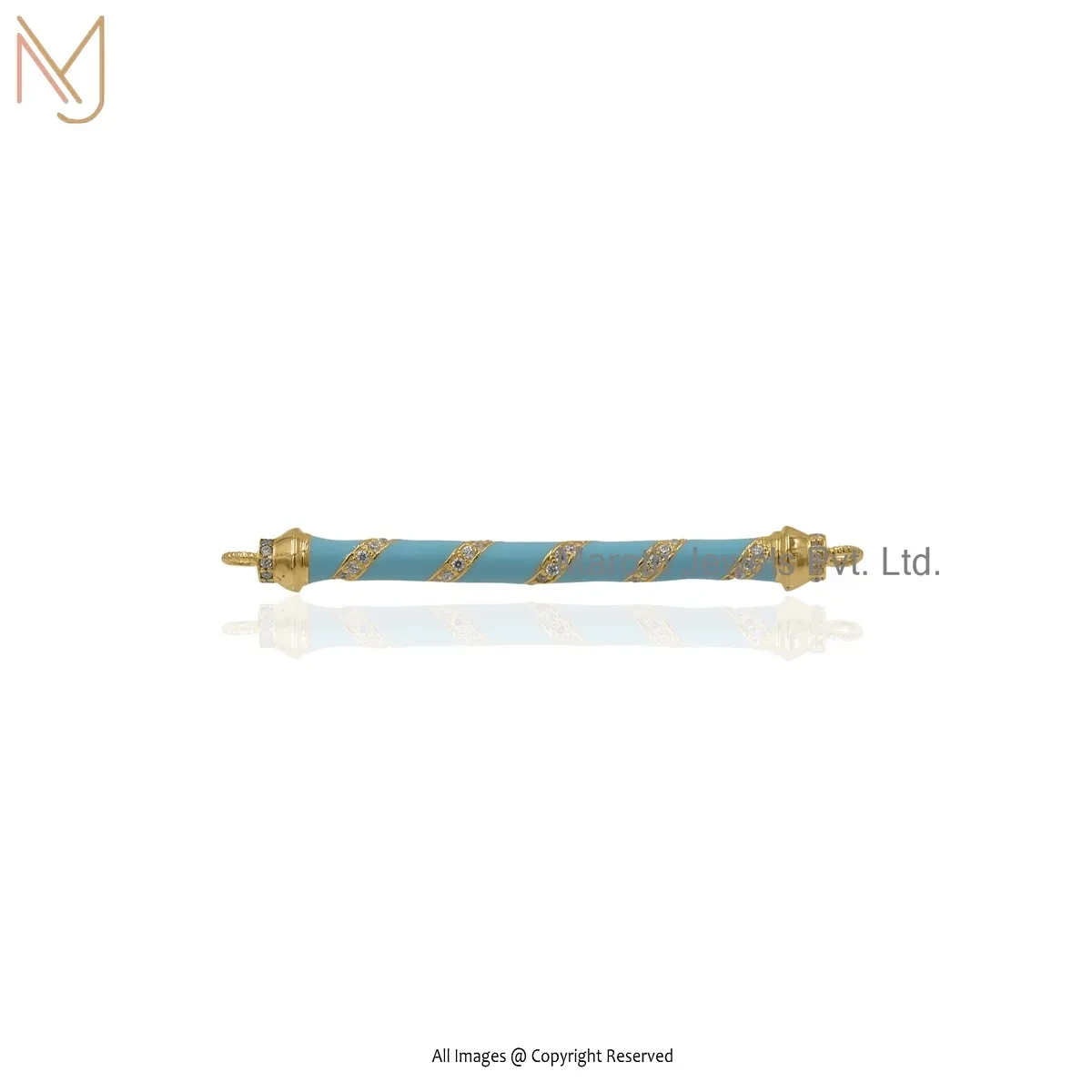 925 Silver Yellow Gold Plated Cubic Zircon & Enamel Gemstone Candy Cane Pendant Manufacturer