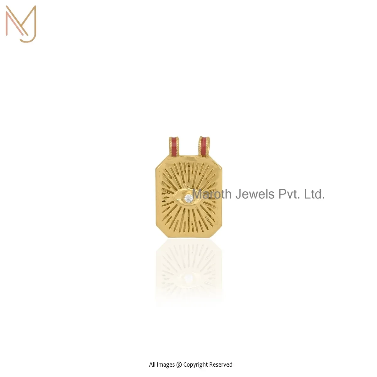 925 Silver Yellow Gold Plated Cubic Zircon & Enamel Gemstone Evil Eye Square Charm Pendant USA