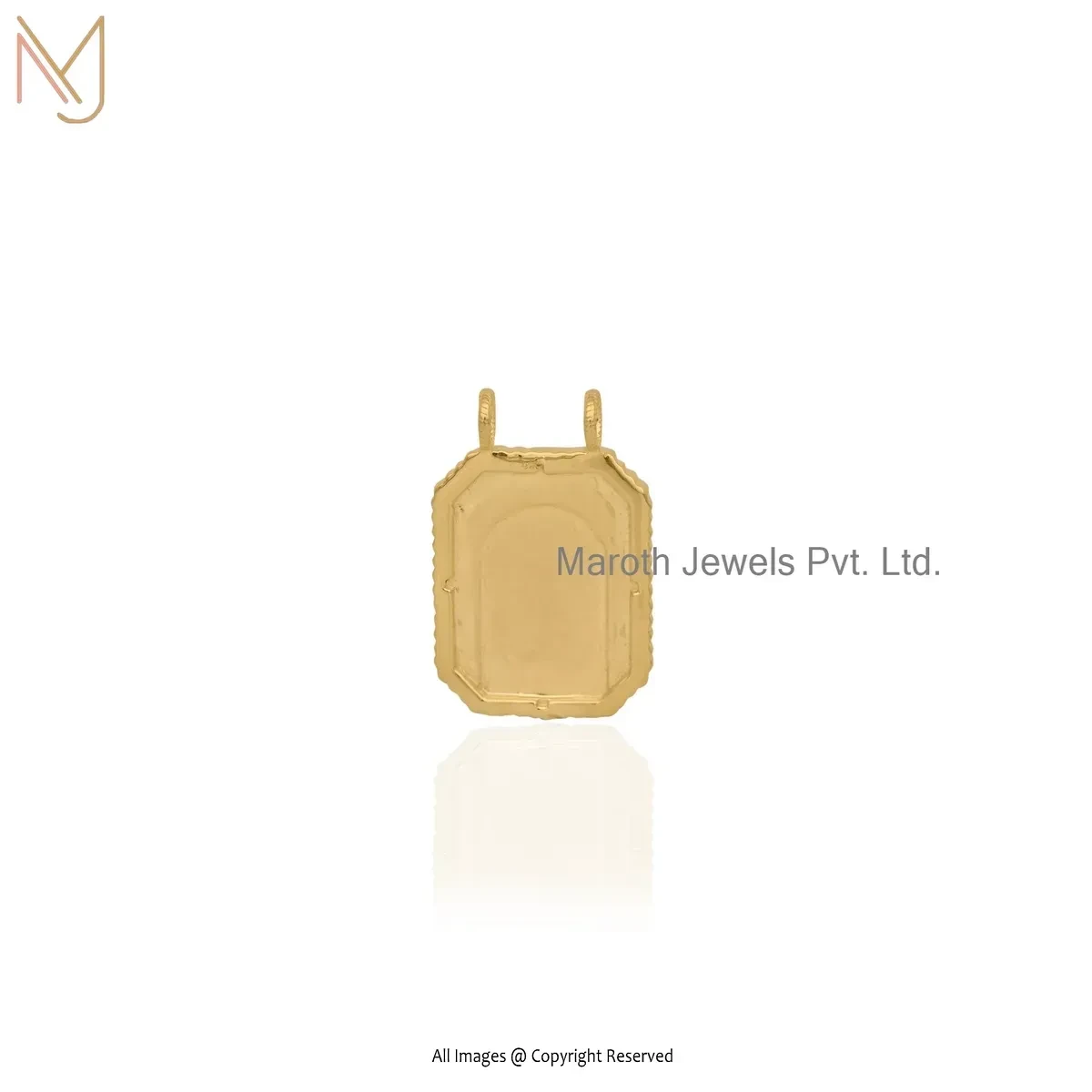 925 Silver Yellow Gold Plated Cubic Zircon & Enamel Gemstone Square Pendant Manuafcturer