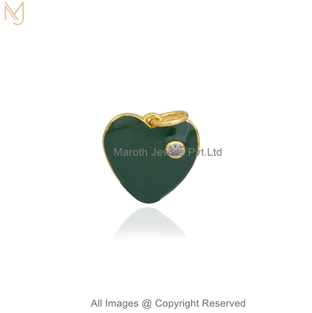 925 Silver Yellow Gold-Plated Cubic Zircon Enamel Heart Pendant Manufacturer