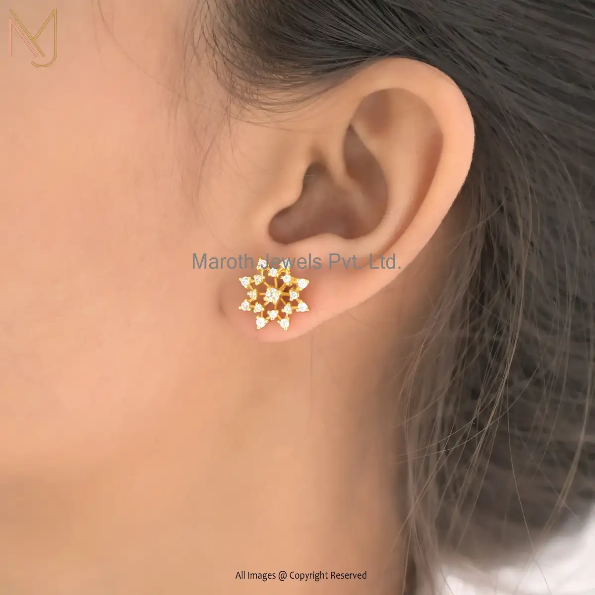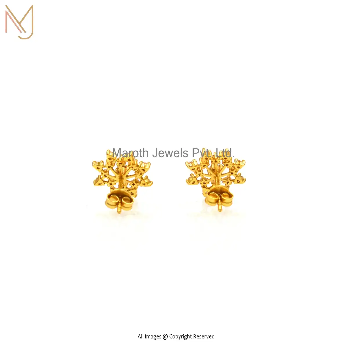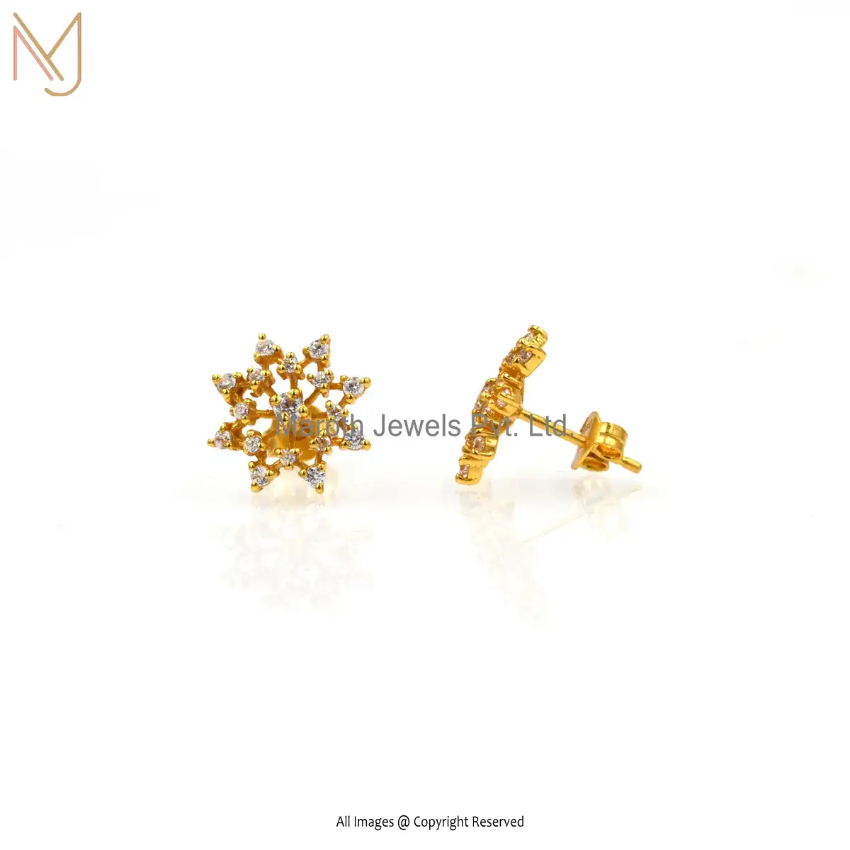 925 Silver Yellow Gold Plated Cubic Zircon Flower Stud Earrings Manufacturer