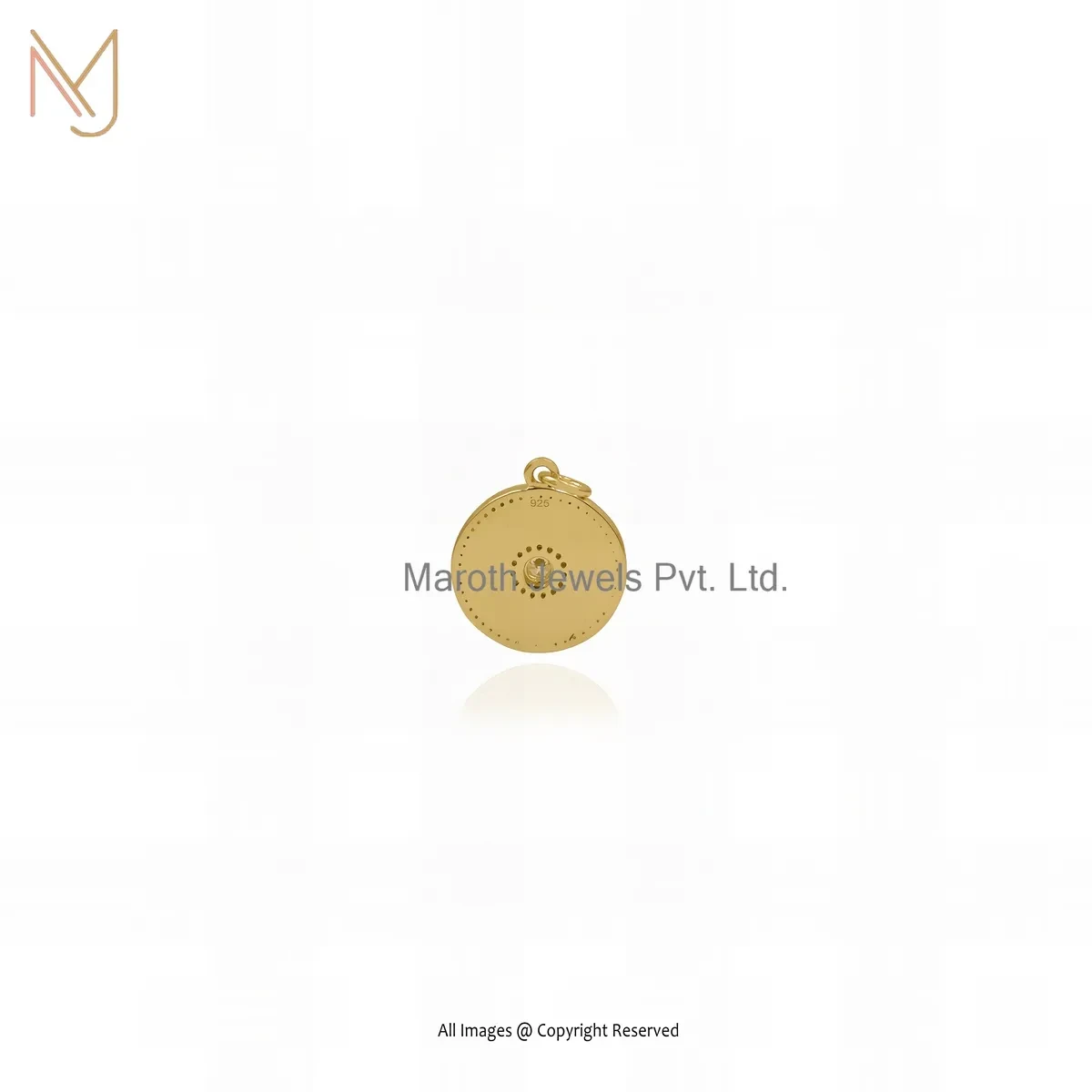 925 Silver Yellow Gold Plated Cubic Zircon Fluted Disc Pendant Custom Jewelry