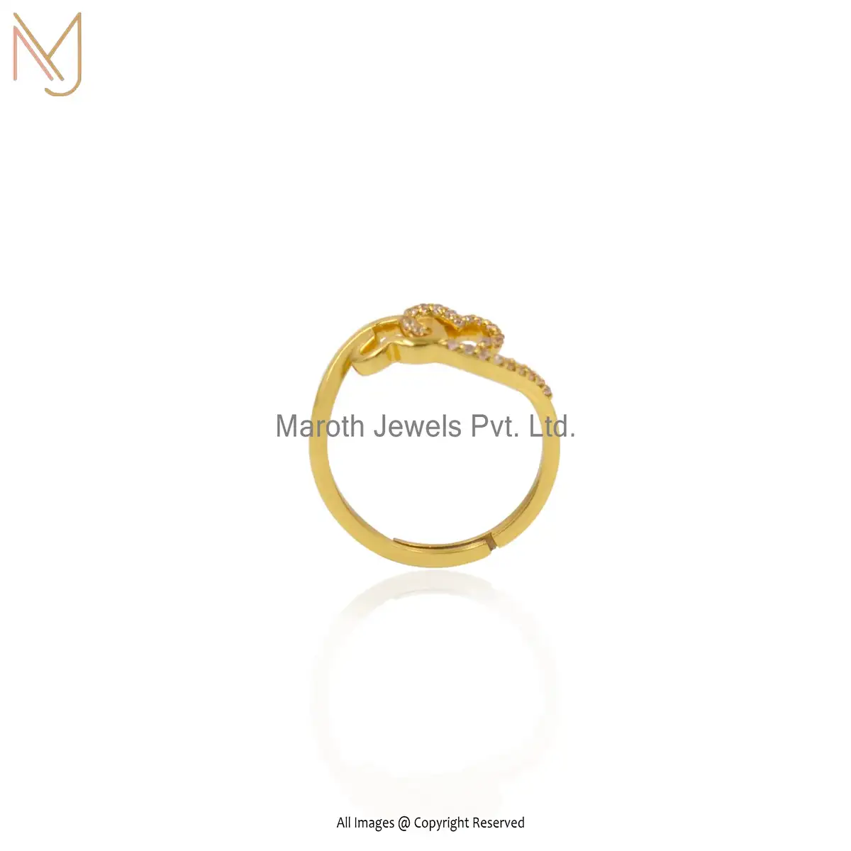 925 Silver Yellow Gold Plated Cubic Zircon Heart Ring Custom Jewelry