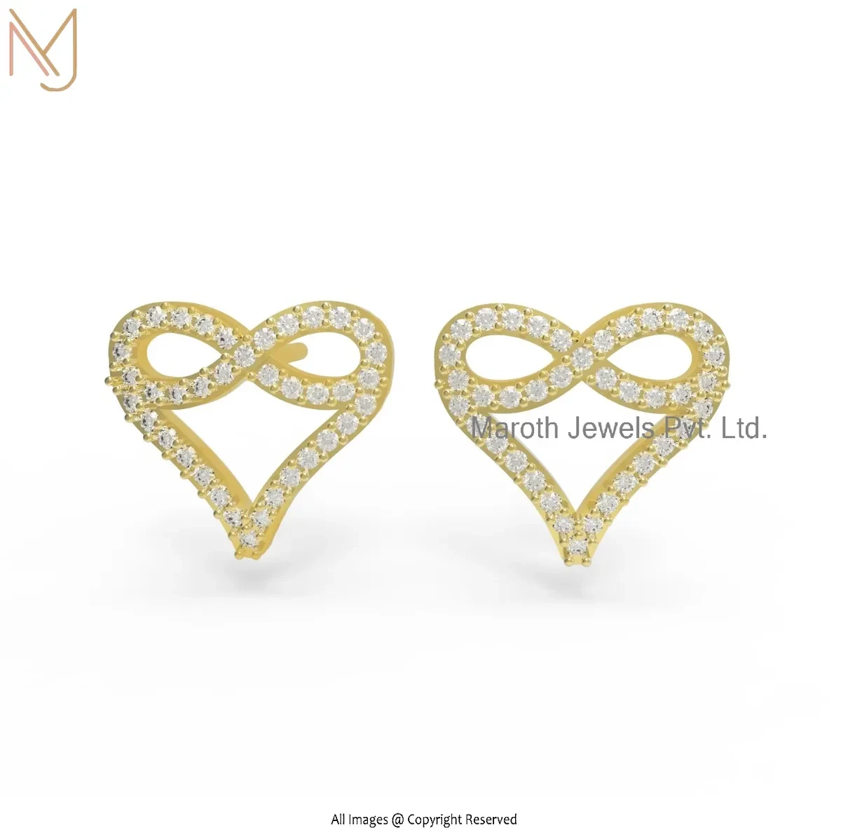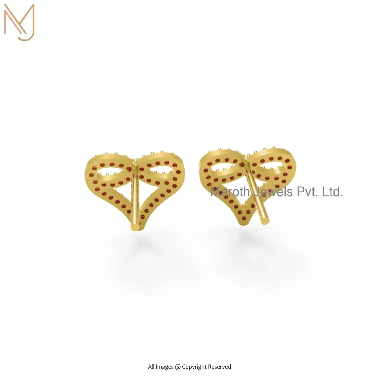 925 Silver Yellow Gold Plated Cubic Zircon Heart Stud Earring Custom Jewelry
