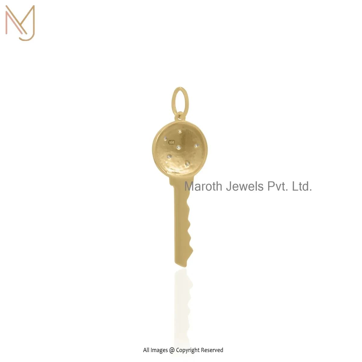 925 Silver Yellow Gold Plated Cubic Zircon Key Pendant Jewelry Supplier