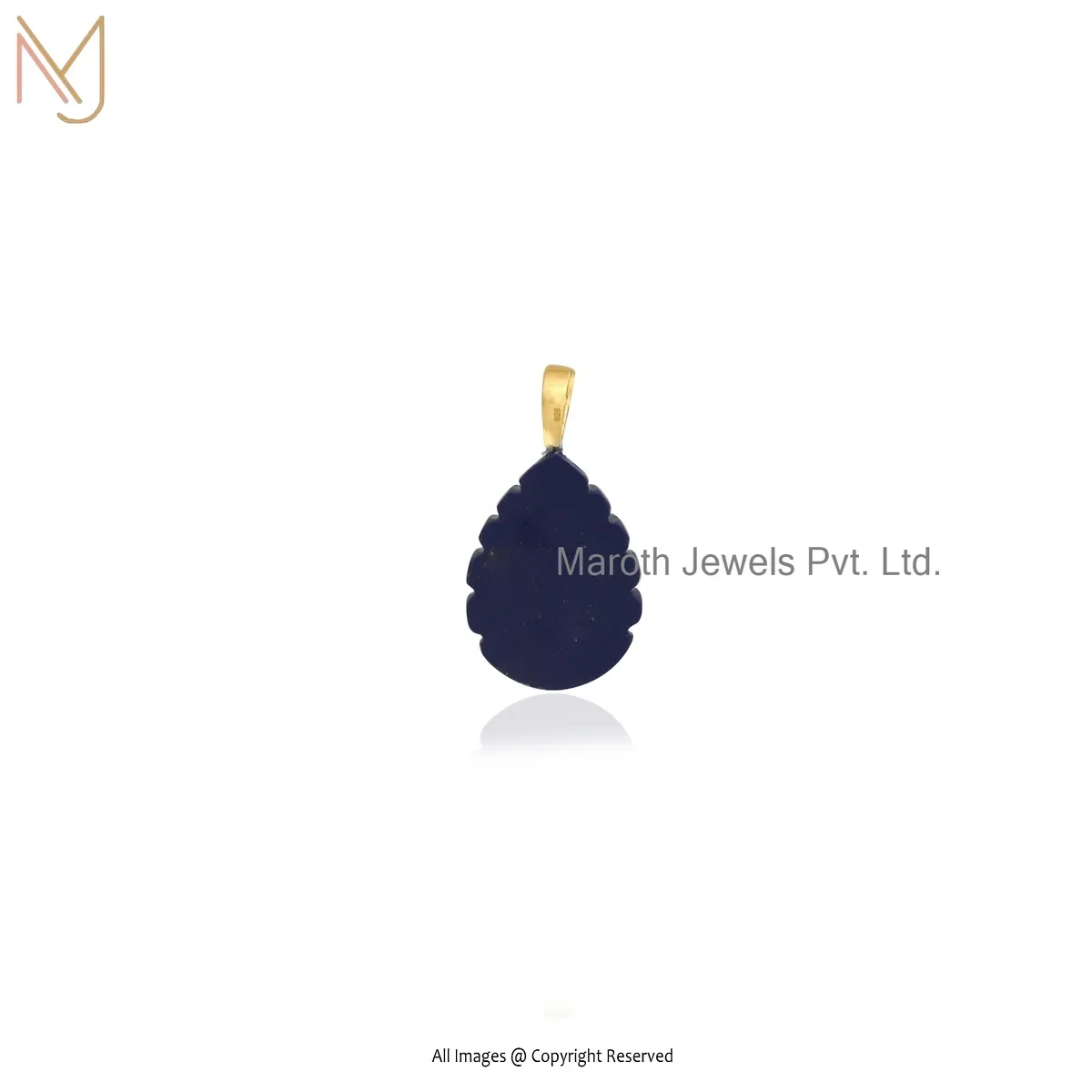 925 Silver Yellow Gold Plated Cubic Zircon & Lapiz Lazuli And Citrine Gemstone Pendentif Flamme lapis Pendant USA